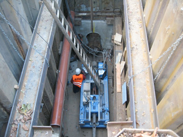 Die unmittelbare Nähe zum Rhein war neben einer Sohltiefe von ca. 7 Meter die besondere Herausforderung dieser Rohrerneuerungsmaßnahme nach dem Berstverfahren. Zwar wurde das Grundwasser zum Zeitpunkt der Sondierungsbohrungen mit 8 m unter Gelände nicht erreicht, dennoch musste man bei einer Grubentiefe von etwa 7 m wegen der Abhängigkeit des Grundwasserstandes mit dem jeweiligen Pegelstand des Rheins auf alle Eventualitäten eingestellt sein.