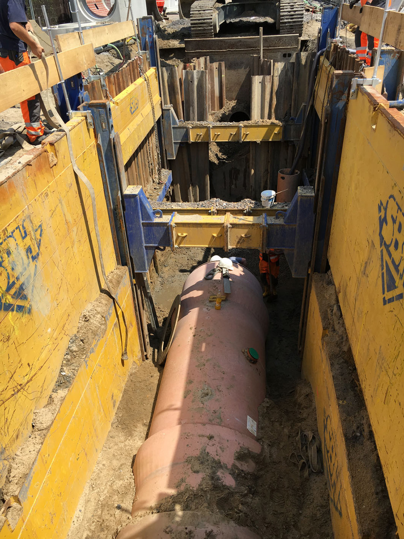 Mischwasserkanal aus Stahlbetonrohren mit Polyethylenauskleidung