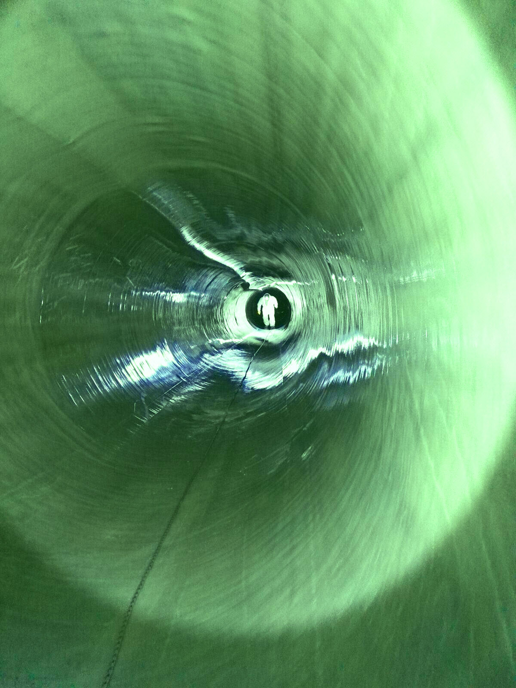 Um zehn Uhr dann der Schreck: Der Sensor des Förderbands streikte. Mithilfe der Kollegen aus Landau gelang es Marc Albrecht jedoch recht schnell, das Problem zu beheben, sodass der zusammengefaltete Liner ohne weitere Schwierigkeiten in den Kanal gezogen werden konnte.