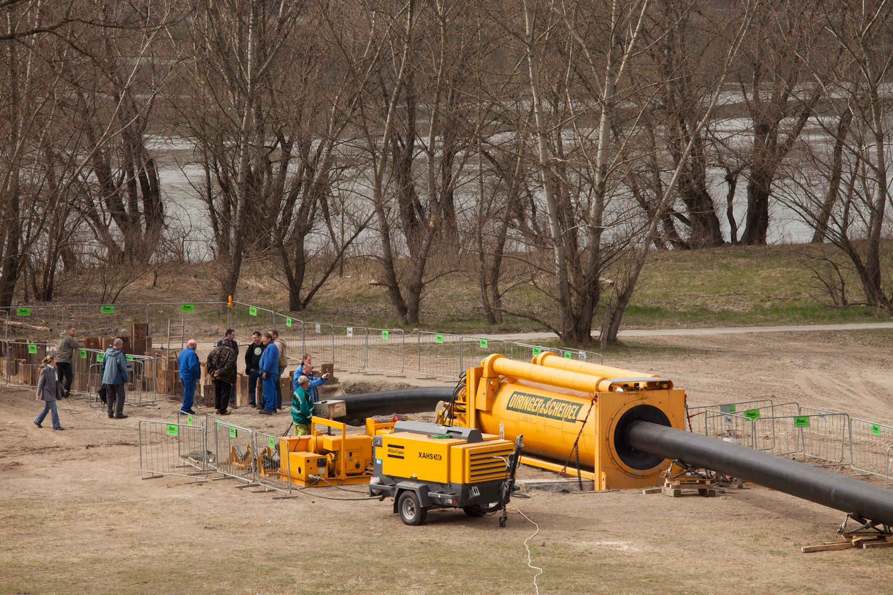 Um die Trinkwasserversorgung der etwa 20 km nördlich von Budapest gelegenen Stadt Vác zu sichern, musste eine auf der Donauinsel Tahitótfalu gelegene Brunnengalerie mit einer Pumpstation am Ufer verbunden werden. Mit diesen Arbeiten wurde die DIRINGER & SCHEIDEL ROHRSANIERUNG GmbH & Co. KG vom ungarischen Generalunternehmer Bonex Építőipari Kft. als Subunternehmer beauftragt.