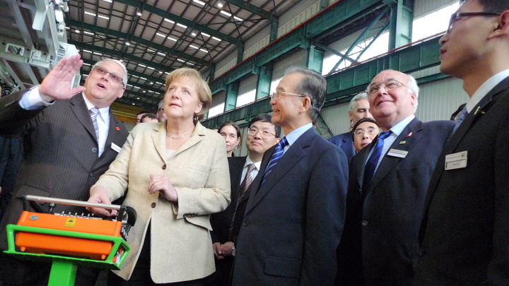 Die deutsche Bundeskanzlerin Dr. Angela Merkel und der chinesische Ministerpräsident Wen Jiabao besichtigten im Februar 2012 das Herrenknecht-Werk (HTE) in Guangzhou. Deutsche Spitzentechnik ist auf dem chinesischen Wachstumsmarkt sehr gefragt – Tunnelbohrmaschinen von Herrenknecht kommen in vielen großen Infrastrukturprojekten in China zum Einsatz.