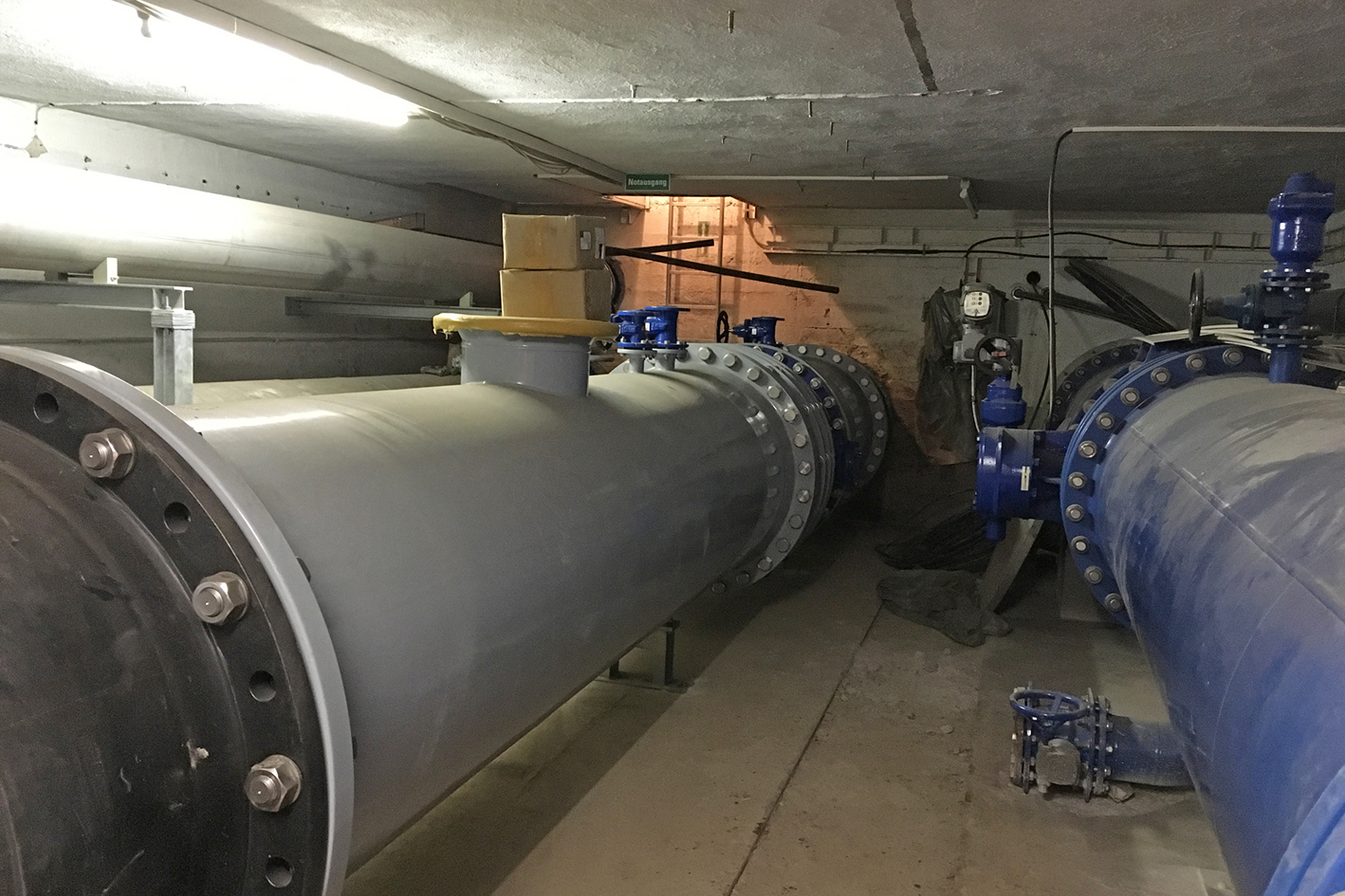 Besonders im Sommer, wenn der Trinkwasserbedarf am größten ist, stößt die alte Druckleitung an ihre Grenzen. Immerhin fließen täglich bis zu 120.000 m3 durch die Leitung. Dann ist die hydraulische Belastung für die Spannbetonrohre äußerst groß, und mit jedem Bar steigt das Risiko eines Rohrbruchs.