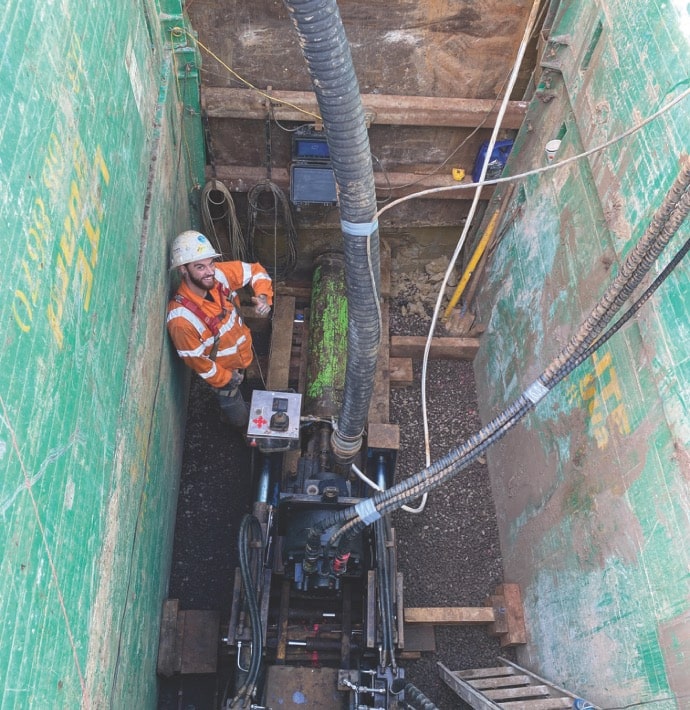 Adept Civil Business Development Manager Quentin Powell said the project was completed in July 2023 and was 4m deep with clay conditions. “The sewer had to be upgraded and there was a 50-metre section that needed to be laser bored to the existing manhole, inside a live roundabout,” Powell said. “It was a 225-diameter pipe, so we used a 345mm clay cutting head which was required for the clay conditions in the area. “Upstream and downstream constraints meant that the bore needed to be at a grade of 1:300. This will be the primary sewer connection for the NAC site. “We drilled to the manhole, retracted and then included the pipe.”