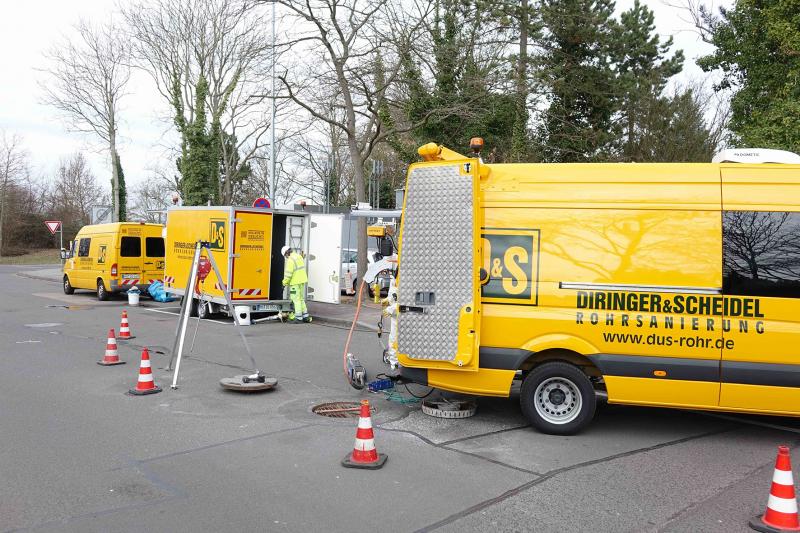IIm Mainzer Stadtteil Finthen konnten die Anwohner nicht viel sehen: Während unterirdisch ein Roboter die Schäden in der Mischwasserkanalisation beseitigte, deuteten an der Oberfläche nur zwei Fahrzeuge und ein Anhänger von der DIRINGER & SCHEIDEL ROHRSANIERUNG GmbH & Co. KG auf die Aktivitäten in der Kanalisation hin.