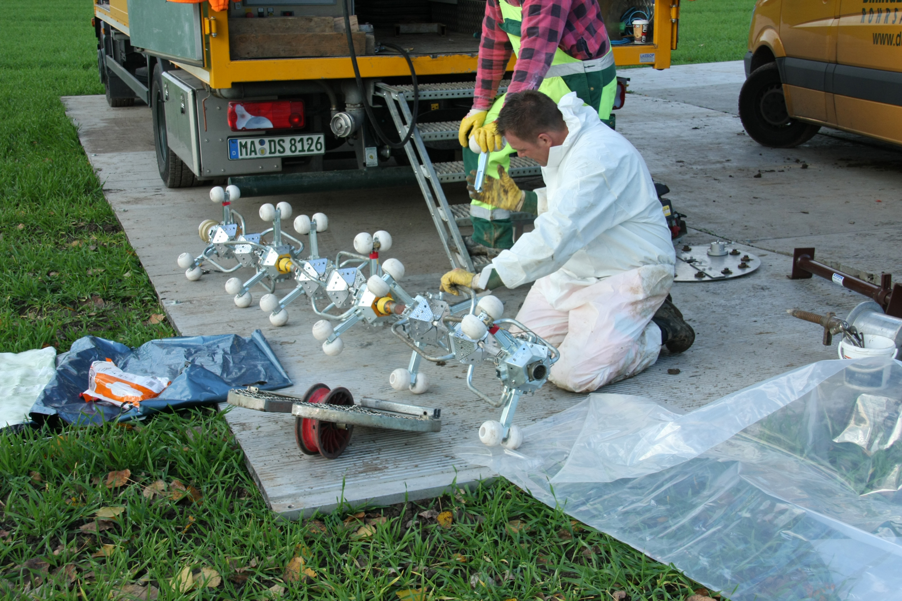 Um die Liner sowie den für die Aushärtung benötigten Lampenzug an den Einsatzort zu transportieren, mussten die Arbeiter der D&S Rohrsanierung zunächst eine mobile Baustraße errichten lassen. Damit war die Voraussetzung geschaffen, dass die Sanierungsarbeiten pünktlich zu Beginn des Festivals abgeschlossen werden konnten.