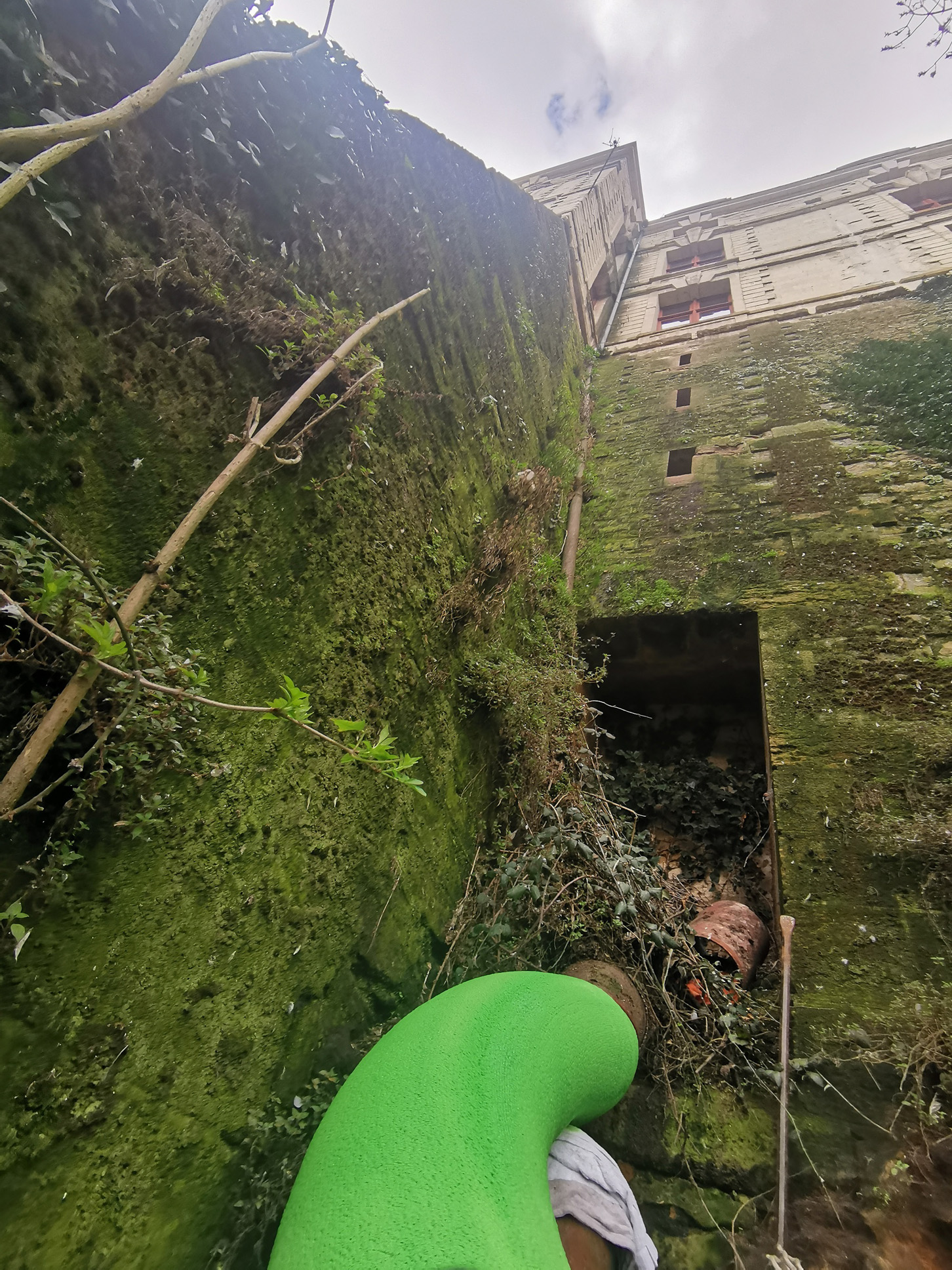 Das schöne Schlossanwesen der Marie de la Tour d' Auvergne, welches heute als Schule genutzt wird, litt an erheblichen Fassadenschäden und Schimmelpilzbefall im unteren Refektorium und in den darüber liegenden Büros. Schuld daran war ein defektes, altes, gusseisernes Regenwasserrohr, welches vom Dach und der Terrasse herabführt.