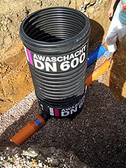 Das Einsatzgebiet des AWASCHACHT DN 600 ist breit gefächert: So ist er für die kommunale Entwässerung als Kanalschacht oder im Hausanschlussbereich als Inspektions- und Kontrollschacht ideal. Da das AWASCHACHT-System speziell auf die REHAU-Kanalrohrsysteme abgestimmt ist, steht dem Anwender ein perfektes Komplettsystem zur Verfügung.