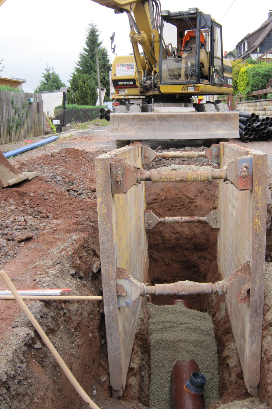 Für den Mischwassersammler kamen HS®-Kanalrohre mit einer Baulänge von 3 m zum Einsatz. 267 m wurden in der Nennweite DN/OD 400 realisiert, weitere 50 m mit Rohren DN/OD 315 und 165 m mit Rohren DN/OD 250. Für die Hausanschlussleitungen wurden zusätzlich 200 m braune HS®-Kanalrohre in DN/OD 160 verlegt. Zudem wurde jedes der Grundstücke durch die Eigentümer mit einem Revisionsschacht für Kontrolle und Reinigung ausgestattet.
