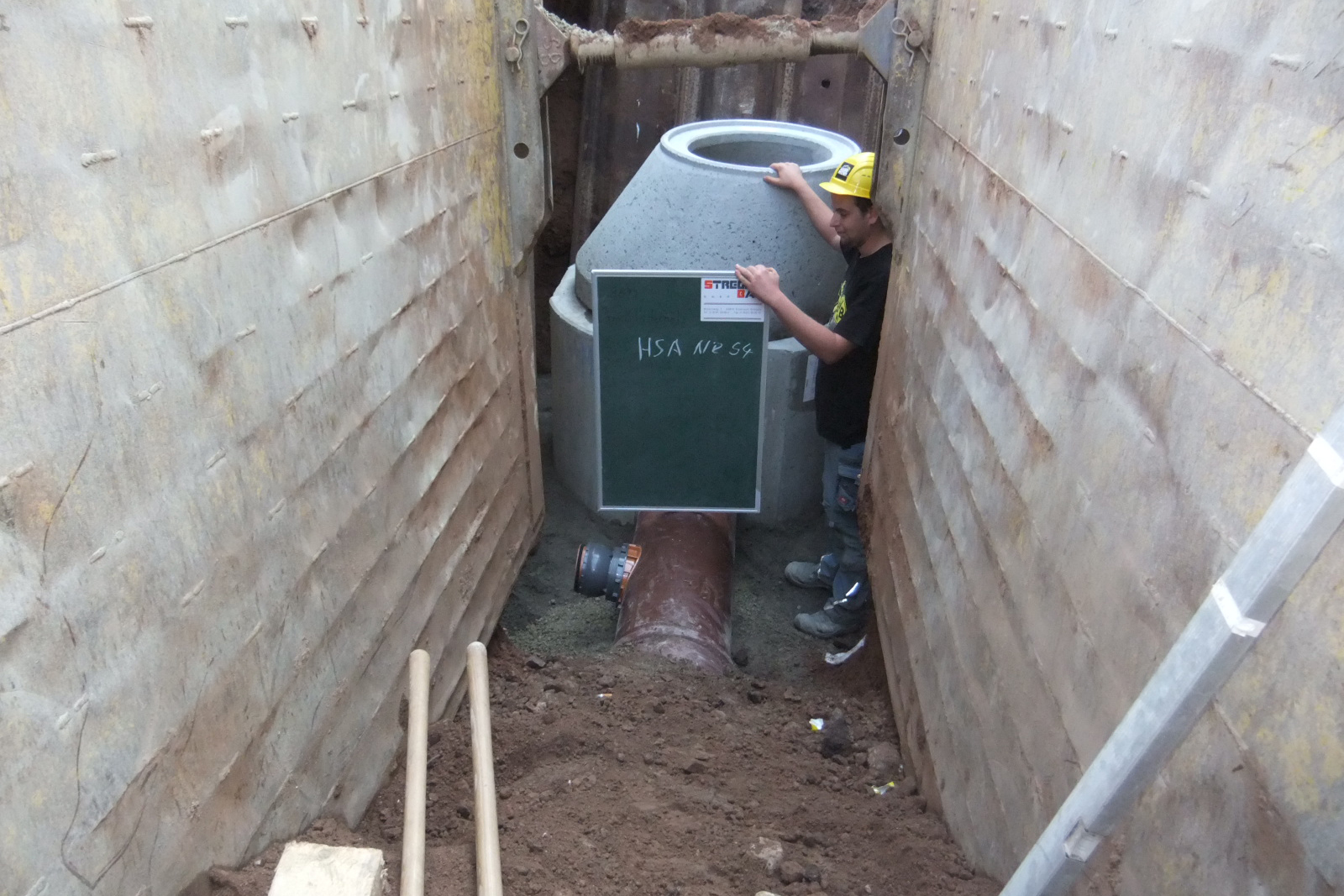 Stregda Bau-Polier Jäckel lobt die einfache Handhabung der Produkte auf der Baustelle: „Das HS®-Kanalrohrsystem ist einfach und gut. Die Rohre lassen sich auf der Baustelle leicht ablängen, vor allem bei der Einbindung in Schachtbauwerke ist das ein echter Vorteil.“ Lob gab es nicht nur für die Rohre von Funke, sondern auch die dazugehörigen Formteile wie etwa Abzweige 400/160 und 315/160 sowie die VPC®-Rohrkupplung und den CONNEX-Anschluss.