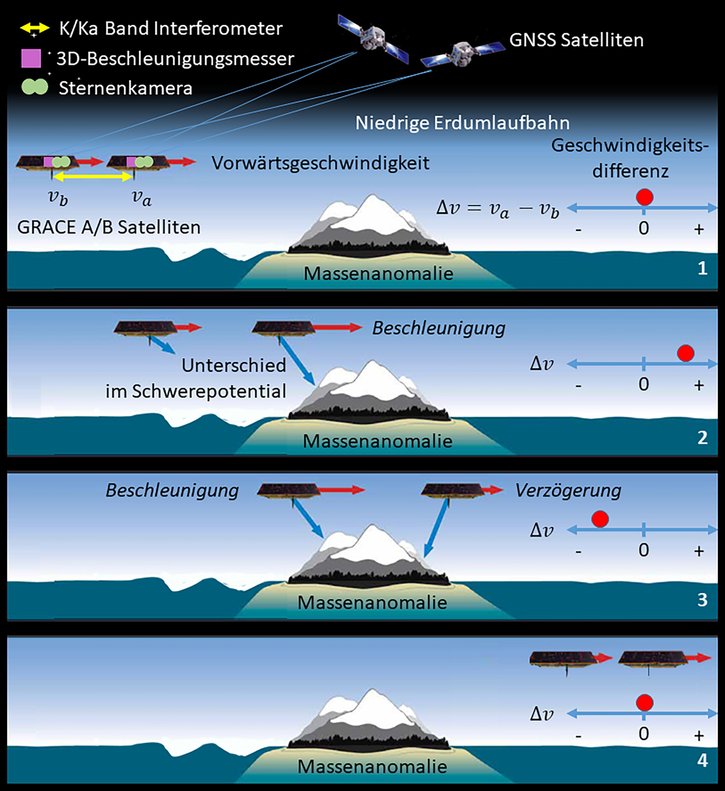 Hintergrund: Bestimmung von Schwerefeld und Wassermassen der Erde aus Satellitendaten
