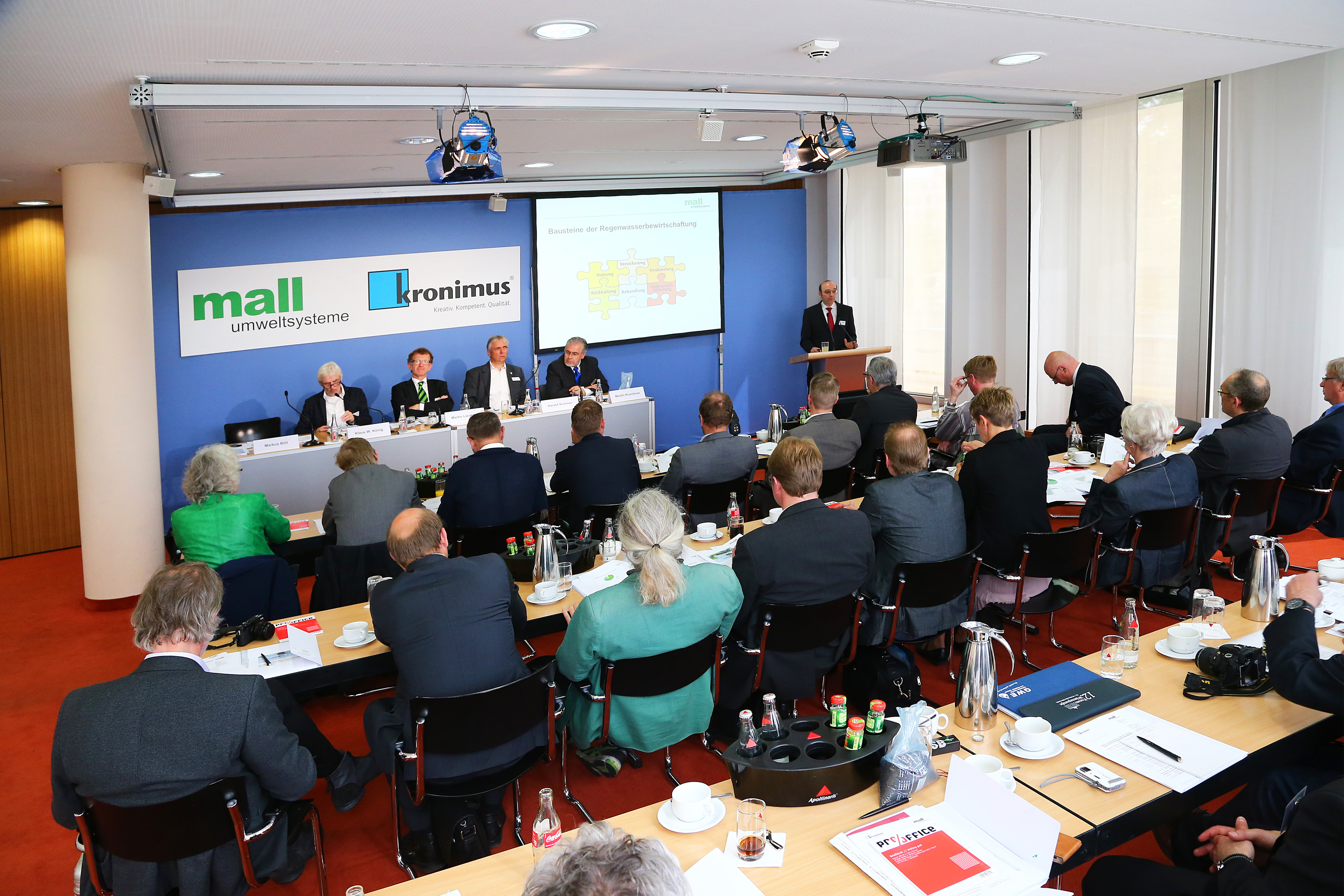 Bei der Medienveranstaltung, die die Kronimus AG Betonsteinwerke, Iffezheim, und die Mall GmbH, Donaueschingen, organisierten, wurden erstmals die bei 1.900 Architekten, Ingenieuren und Behörden erhobenen Umfrageergebnisse zur dezentralen Regenwasserbewirtschaftung in Deutschland vorgestellt. International anerkannte Wasserexperten wie Professor Dr. Heiko Sieker, Hoppegarten, und Sachverständiger Klaus W. König, Überlingen, legten konkrete Vorschläge zur Lösung der Starkregenprobleme in Zeiten des Klimawandels vor.