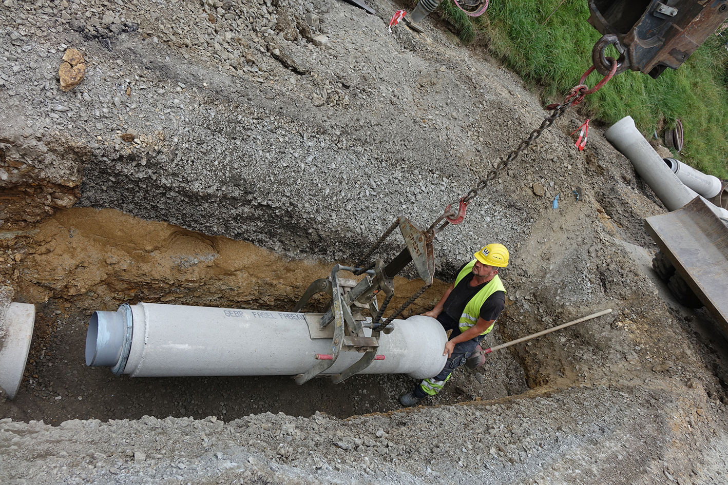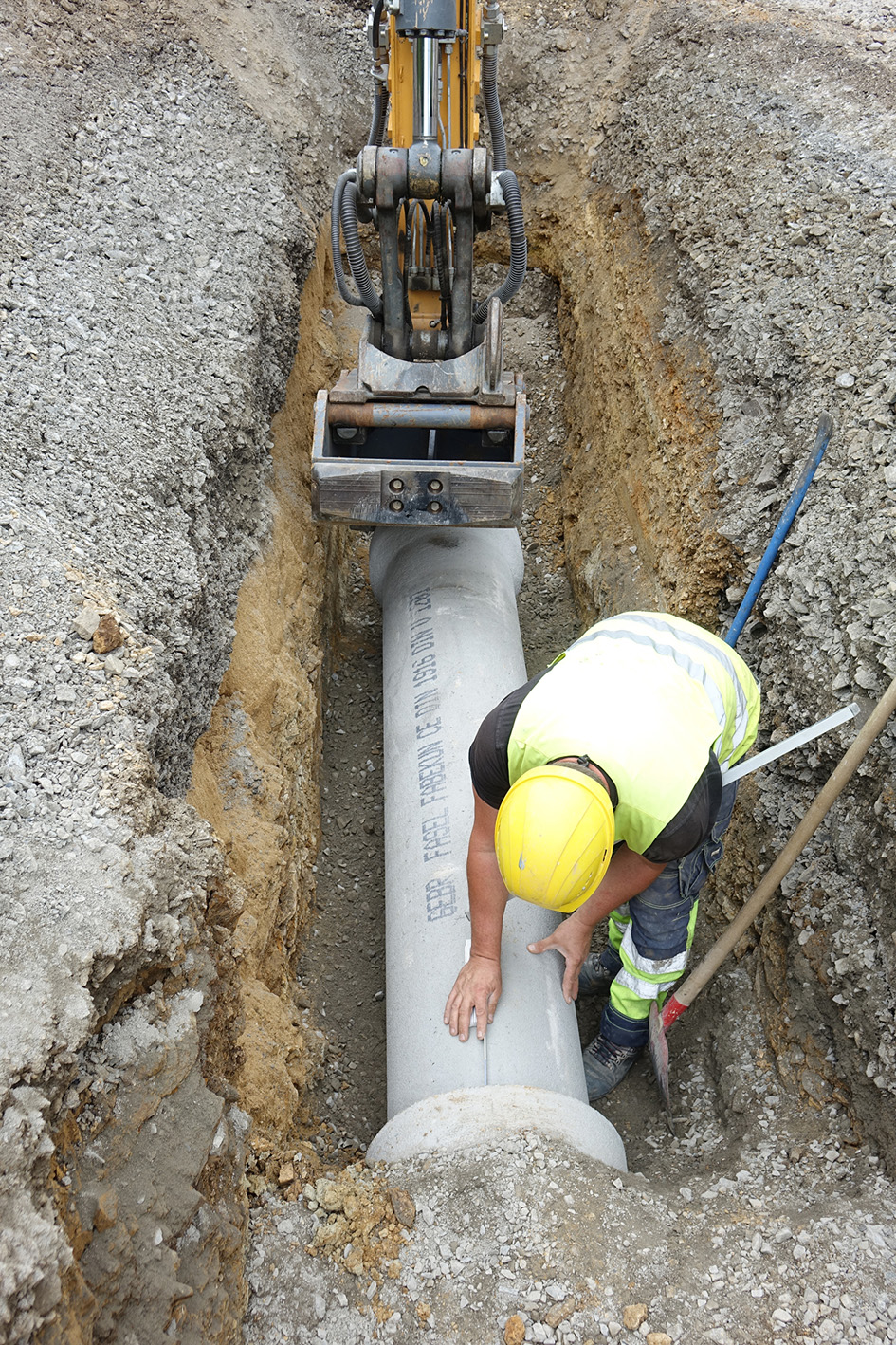 Der Aggerverband und die Gemeinde Marienheide entschlossen sich daher, bei der Neuverlegung der Kanäle Rohre mit einer größeren Nennweite einzusetzen. Die Wahl fiel auf FABEKUN®-Kanalrohre in Nennweiten von DN 300 und DN 700. Jörg Dencker, beim Verband zuständig für die Kanalinstandhaltung: „Mit den Produkten von Fasel haben wir bereits in der Vergangenheit gute Erfahrungen gemacht. Das System FABEKUN® ist aufgrund seiner Werkstoffeigenschaften aber auch mit Blick auf Nachhaltigkeitsaspekte eine gute Wahl.“