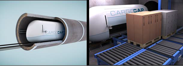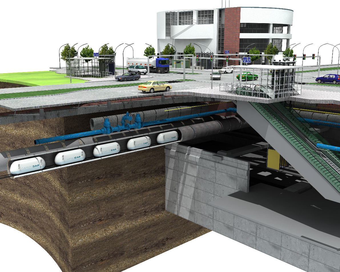 CargoCap ist in Städten und Ballungsräumen eine innovative, umweltfreundliche Alternative zum Lieferverkehr auf der Straße. Der Transport erfolgt in unterirdischen Fahrrohrleitungen unter der Straße mit automatisierten, elektrisch angetriebenen Spezialfahrzeugen, den sogenannten Caps.