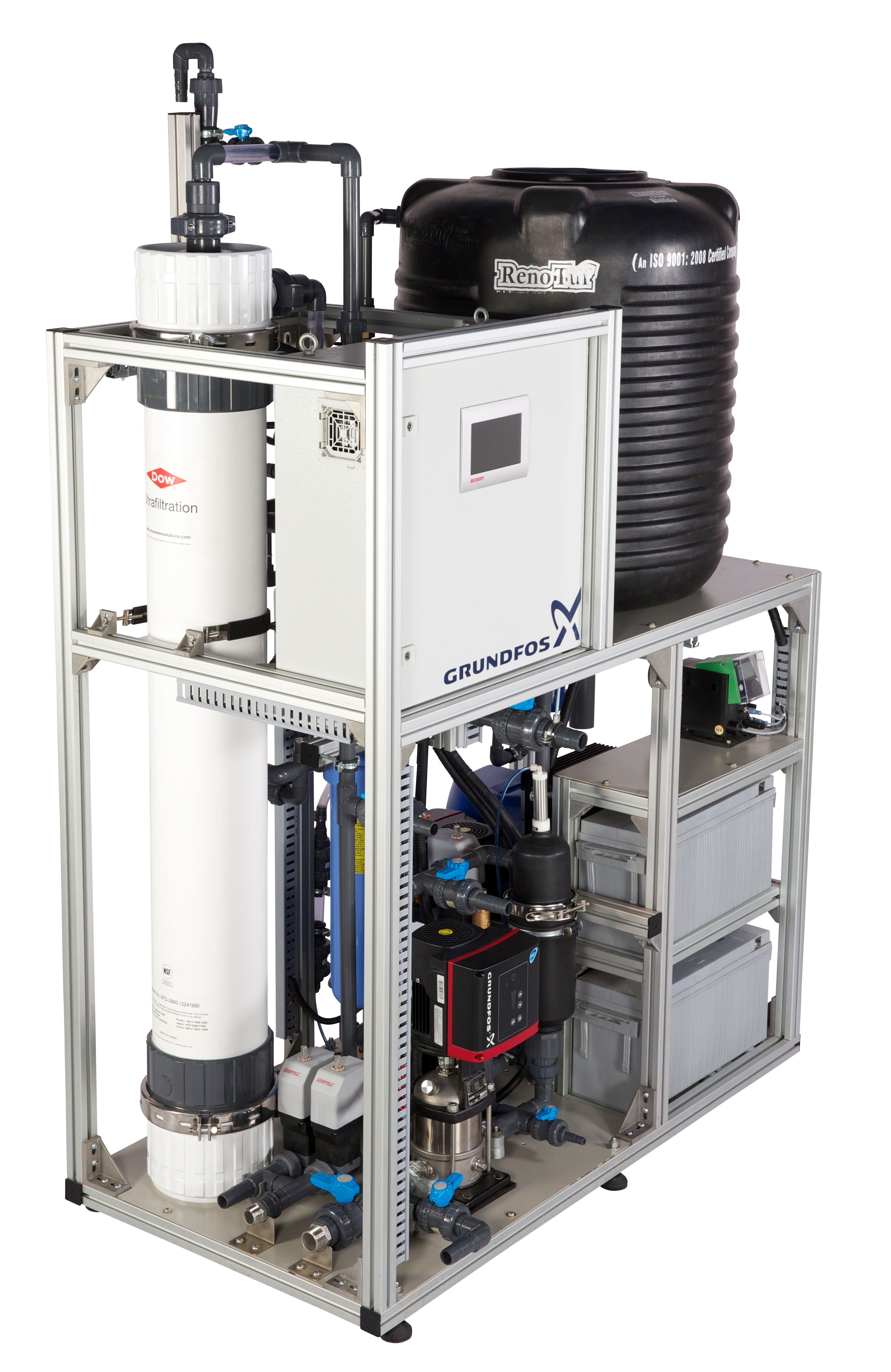 Die Wasserspender werden bevorzugt an vorhandene Frischwasserleitungen der Gemeinde angeschlossen. Muss das Wasser anderweitig beschafft werden – und das auch in Regionen ohne Infrastruktur für elektrischen Strom – hat Grundfos mit der solar- oder windbetriebenen Brunnenpumpe SQflex auch dafür eine entsprechende Lösung entwickelt. Optional sorgt AQpure, eine kleine Ultrafiltrationsanlage, dafür, dass potenziell verunreinigtes Oberflächen- und Flusswasser aufbereitet wird und dadurch Trinkwasserqualität erreicht. Auch der AQtap kann dann per Solar-Panel mit Strom versorgt werden.
