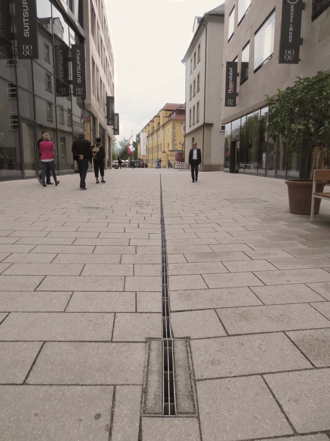 In der Umsetzung wurden verschiedene Produkte – wie Faserfix KS 200 mit Längsstabrost und Zarge aus Edelstahl oder Recyfix Standard 150 mit einem Schlitzaufsatz aus Edelstahl – mit Sonderlösungen kombiniert. In einigen Bauabschnitten war die Aufbauhöhe minimal, so dass kundenindividuelle Komplettlösungen wie die Small Channel als Sickerrinne aus Edelstahl oder die Kastenrinne aus Edelstahl mit besonders hohem Leistungsvermögen zum Einsatz kamen. Hinter dem neuen Großprojekt der Landeshauptstadt steht der Kaufhauskonzern Breuninger als Bauherr und Investor. Behnisch Architekten aus Stuttgart haben das Viertel geplant.