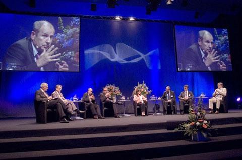 Die zukünftigen Anforderungen an den DVGW diskutierten die Teilnehmer vor dem Hintergrund der aktuellen Branchenentwicklungen, die namhafte Vertreter der Gasund Wasserwirtschaft in Würzburg darlegten. Unter anderem beleuchtete Dr. Bernhard Reutersberg, Vorstandsvorsitzender der E.ON Ruhrgas AG, Essen, die Auswirkungen von demographischem Wandel und Klimaveränderung auf die Gas- und Wasserwirtschaft. Bei Gas führe beides zusammen mittelfristig zu einer weiteren Wettbewerbsverschärfung und einem hohen Investitionsbedarf bei rückläufigem Absatz. Um diesen Paradigmenwechsel zu gestalten, müsse der Mehrwert für Gas weiterentwickelt werden – und zwar in ökonomischer, ökologischer und technologischer Hinsicht. Aufgrund der Eigenschaften von Erdgas – zum Beispiel in Kombination mit der Solar-Energie oder als Brücke zu Wasserstoff– seien die Voraussetzungen dazu gegeben: Erdgas biete zusammen mit regenerativen Techniken die ideale Basistechnologie. Hiermit müsse auch der Ordnungsrahmen in Einklang gebracht werden.