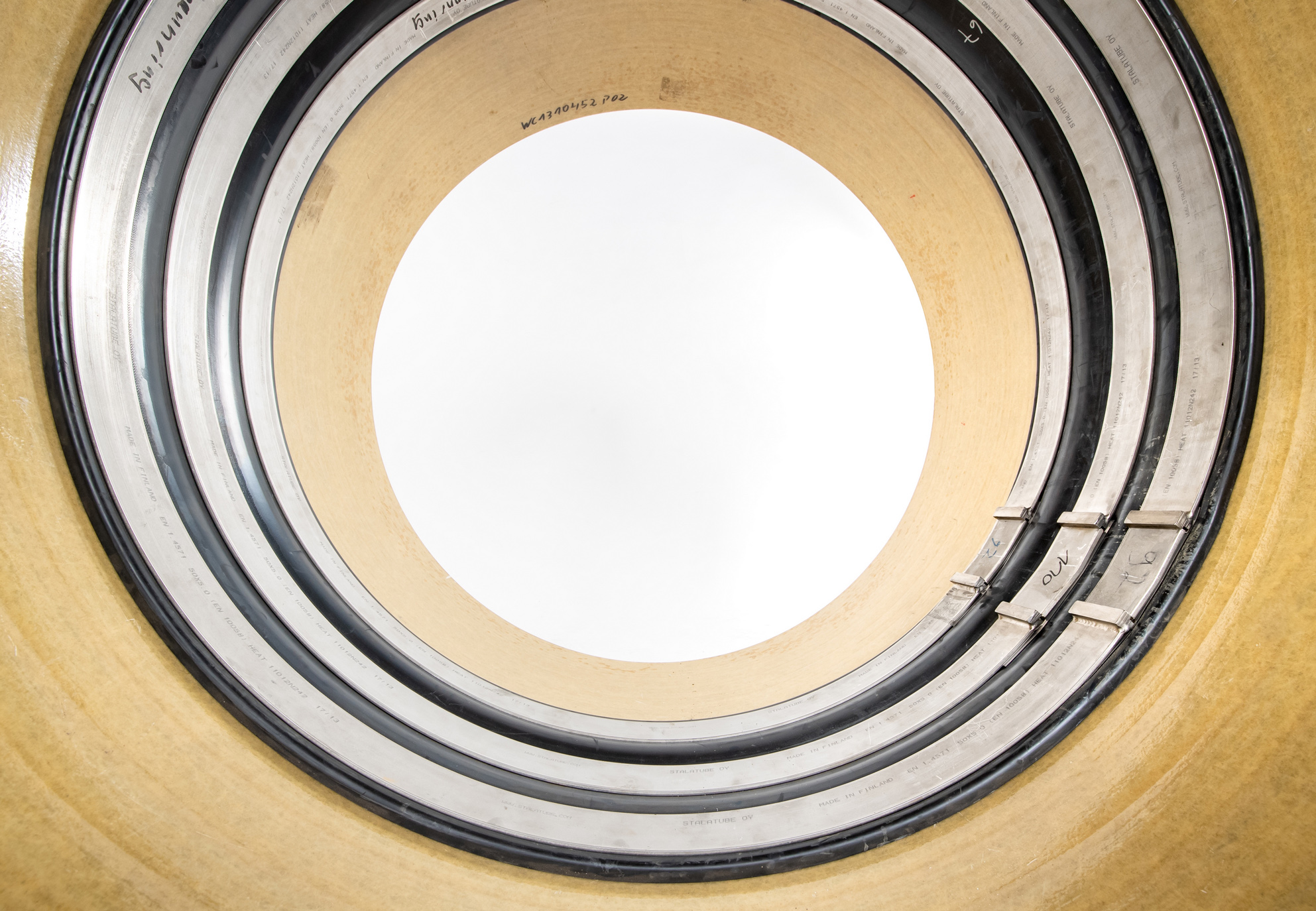 Eine geeignete Lösung für Rohre mit Infiltration stellen die Rohrinnendichtsysteme von Pipe-Seal-Tec dar. Da die Produkte aus Edelstahl und Elastomerer (Gummi-) Dichtung rein mechanisch verspannt werden, besteht keine Gefahr des Auswaschens. Die Innendichtmanschette RedEx ist für die Sanierung von Schadstellen oder Undichtigkeiten in begehbaren Rohrleitungen im Bereich von DN 800 bis DN 2400 als geprüftes Reparaturverfahren zugelassen und kann bis maximal DN 6000 eingesetzt werden. Die Manschette besteht aus einer extrem beständigen EPDM-Dichtmanschette, dazugehörigen Spannringen aus Edelstahl und Schlossstücken.