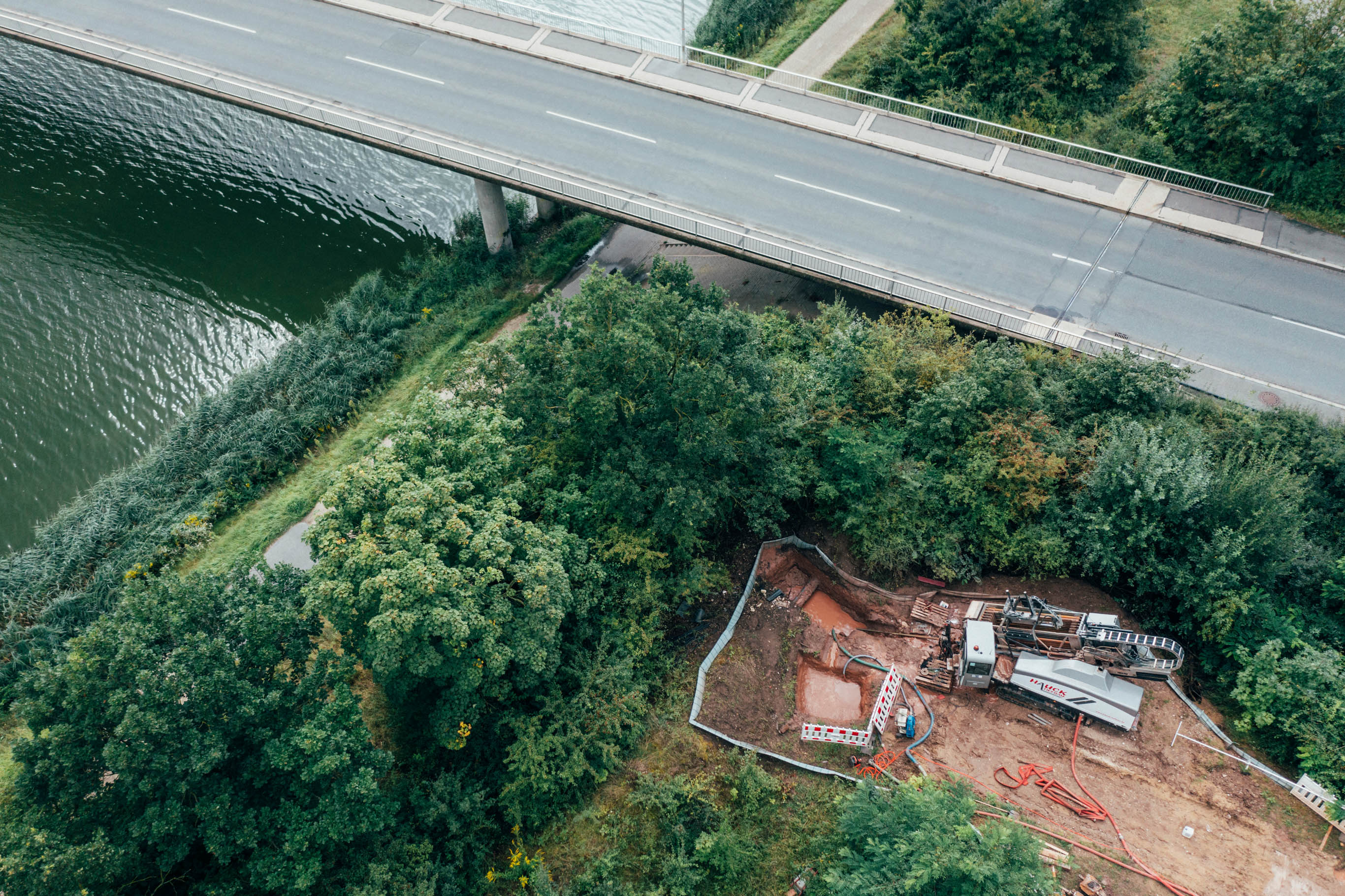 Das privatrechtliche Kommunalunternehmen der Stadt Fürth, die infra fürth gmbh, hat kürzlich, als Versorgungs- und Netzdienstleister für die rund 128.000 Fürther Einwohner, die Entscheidung darüber getroffen, wie die ununterbrochene Versorgung gewährleistet werden kann. Egal, ob Sanierung oder Abriss der Brücke – beides war ungewiss und so war es nur logisch, die neuen Versorgungsleitungen für Strom, Internet und Telekommunikation zusammen unter den Kanal via Düker zur Umbindung an die Bestandstrassen auf beiden Seiten des Kanals zu bauen. Dazu mussten im Vorfeld wasserrechtliche Auflagen erfüllt, der Schutz von Natur und Umwelt berücksichtigt, Grundstücksverhältnisse geklärt, die Beschaffenheit des Baugrundes untersucht und logistische Fragen und Probleme beantwortet, respektive gelöst werden. Selbstverständlich waren auch fachmännisches Know-how, jede Menge Erfahrung und das dafür notwendige technische Equipment gefragt.