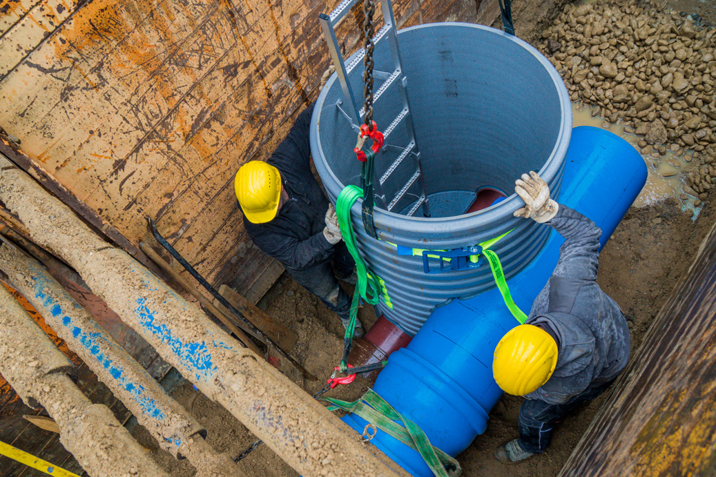 Vier Kombischächte DN 1000 von Funke für Baugebiet in Laupheim