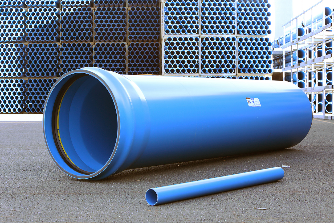 HS®-Rohre sind wandverstärkte Vollwandrohre aus PVC-U, hergestellt in Anlehnung an die DIN EN 1401-1, jedoch mit erhöhter Wanddicke und einer Mindestringsteifigkeit von 12 kN/m2 (SN 12) bzw. 16 kN/m2 (SN 16). Die Nennweiten DN/OD 110 bis 160 wurden speziell für den Hausanschlussbereich konzipiert; die Nennweiten DN/OD 200 bis 800 eignen sich hervorragend für die Erschließung von Neubaugebieten und für die Ableitung von Schmutz- und Regenwasser.