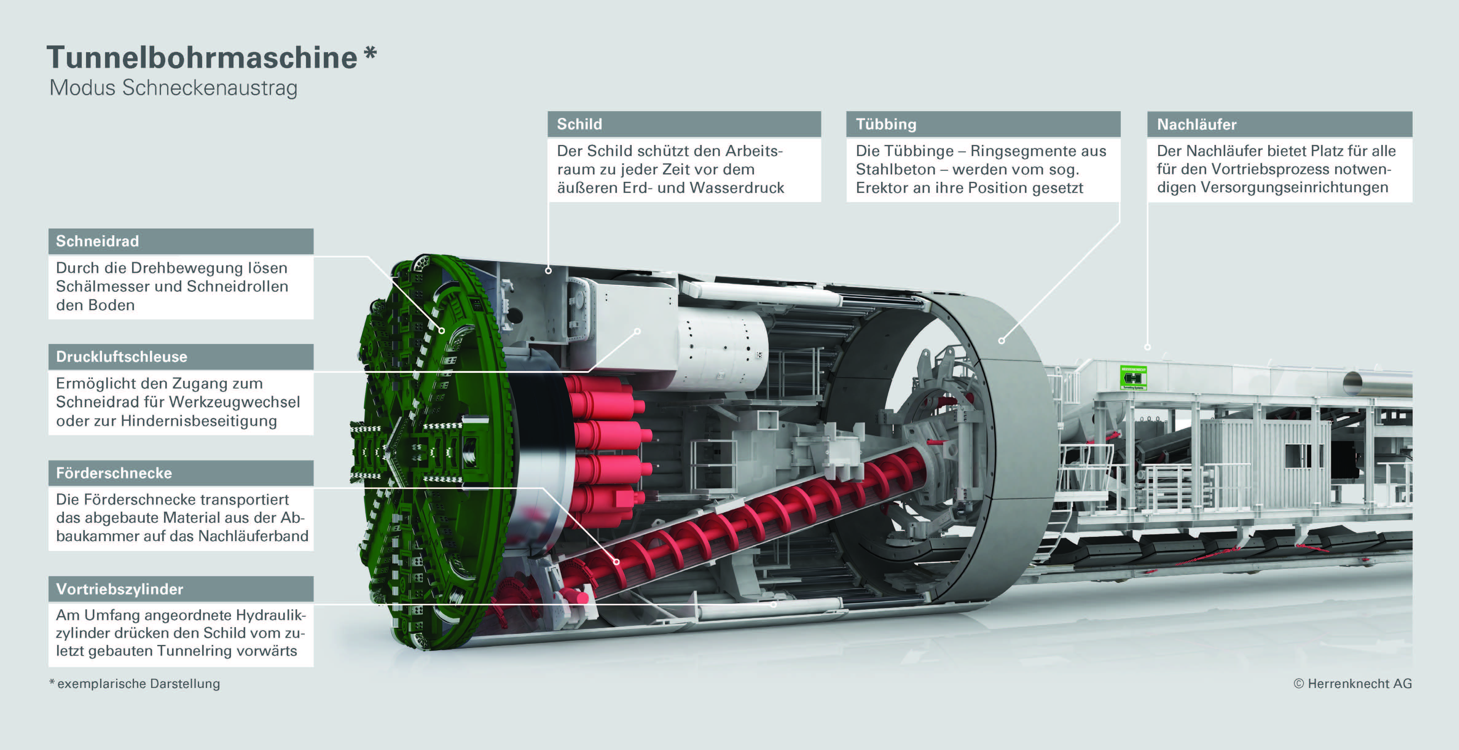 Der Unternehmensvorsitzende Dr.-Ing. E.h. Martin Herrenknecht ist stolz auf die 120 Meter lange Tunnelbohrmaschine mit einem Schilddurchmesser von 10,82 Metern: "Jetzt können wir alle gemeinsam zeigen, wie mit High-Tech-Tunnelbohrtechnik aus Baden-Württemberg präzise und sicher leistungsstarke Top-Infrastrukturen in Baden-Württemberg entstehen, absolut umweltschonend. Es macht unsere Mitarbeiterinnen und Mitarbeiter stolz, dass wir quasi vor der Haustür zeigen können, was unsere Technik drauf hat."