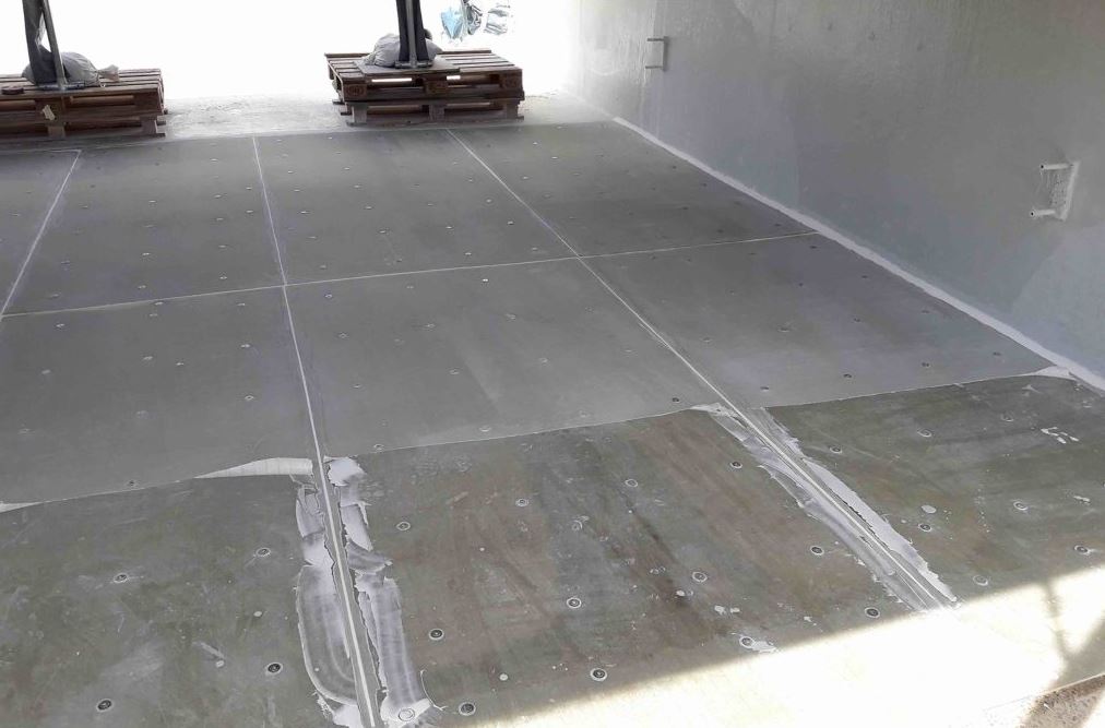 Durch die Zugabe eines Absorbers können Polyesterharze UV-stabil eingestellt werden, wie Jan Benad, Technische Leitung bei FRP Prolining erläutert: „Für Hilchenbach wurden die Platten im Format 1,20 Meter mal 2,50 Meter auf speziellen Laminiertischen hergestellt. Die Plattendicke betrug 5 Millimeter. Je nach Anforderungen können wir aber auch Platten ab einer Dicke von 1 bis 10 Millimeter und darüber hinaus produzieren.“ Ein als letzte Schicht aufgebrachtes Abreißgewebe dient als Schutzfolie für den Transport und das Handling auf der Baustelle bis zum abschließenden Coating der verlegten Platten. Alle Ausgangsmaterialen wie Trägermaterial, unterschiedliche Harze sowie Zusatzstoffe entsprechen den Qualitätsanforderungen für den Einsatz im Abwasserbereich und werden regelmäßig extern labortechnisch überwacht.