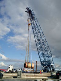 Nachdem die einzelnen Segmente fertiggestellt waren, wurde der „Riesenmolch“ auf dem Firmengelände zur Kontrolle zusammengesetzt und für den weiteren Transport zum Einsatzort wieder zerlegt. Vor Ort auf der Baustelle wurde der Molch auf einer speziell dafür entwickelten Montageschale für den Einsatz wieder montiert und mit Ballast bestückt.