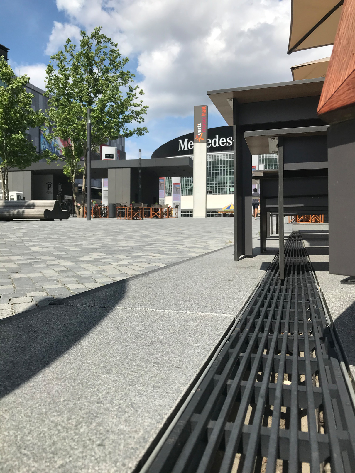 Drei Jahre Mercedes Platz in Berlin – drei Jahre sichere Oberflächenentwässerung für ein stark frequentiertes neues Stadtareal: Im Herbst 2021 feiert das moderne Entertainmentviertel in der Hauptstadt seinen dritten Geburtstag. Es entstand 2018 auf dem Areal eines ehemaligen Gewerbegebiets des Ostgüterbahnhofs.