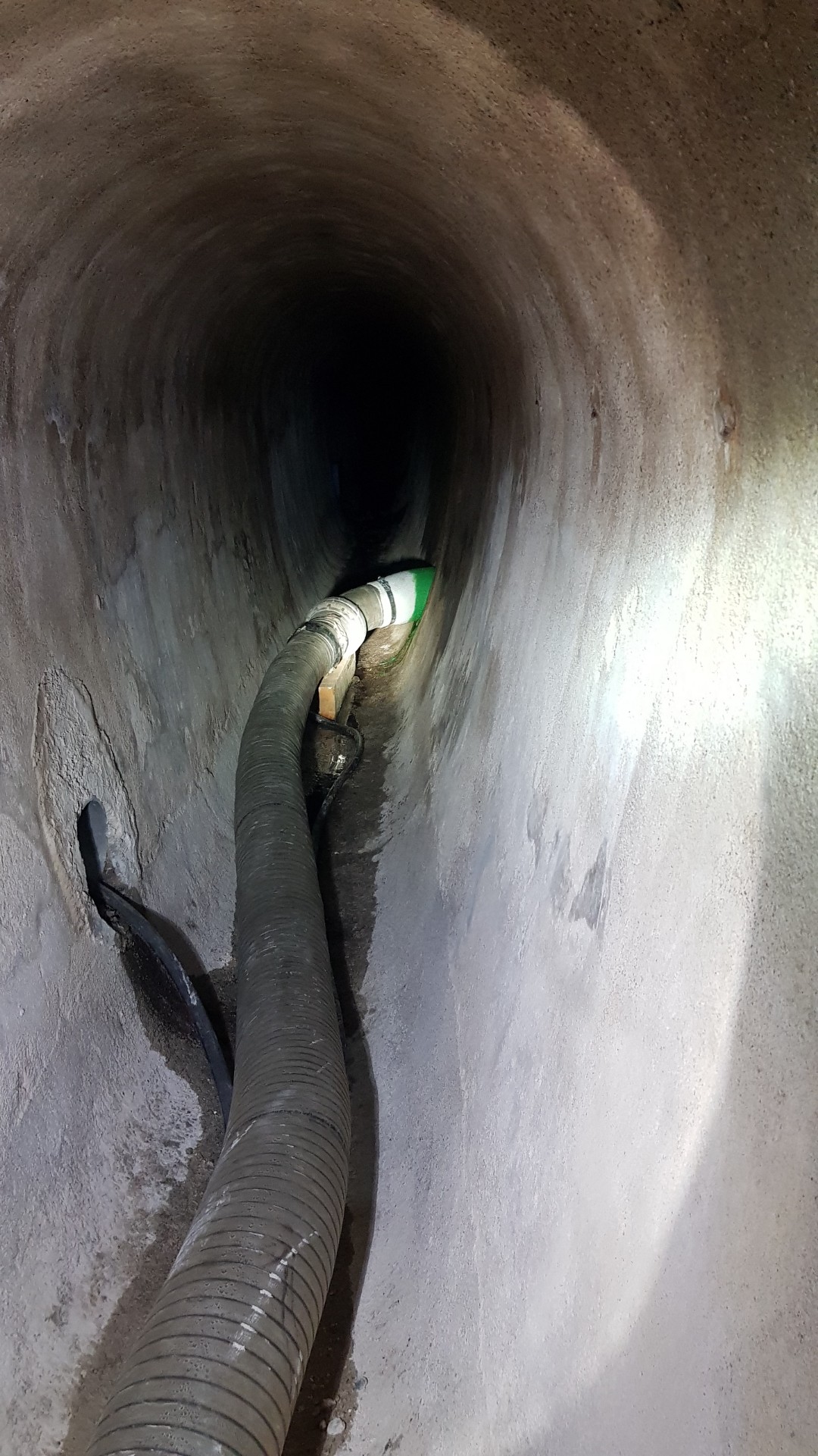 Der BRAWOLINER® wurde mit dem Kunststoffrohr zum unterirdischen Anschluss in den begehbaren Hauptkanal gebracht und unter engsten Platzverhältnissen in den zu sanierenden Kanal per Inversionsverfahren umgestülpt. Anschließend kam der BRAWO® SteamGenerator 50 UL für die Aushärtung zum Einsatz. Das mobile Heizgerät lieferte schnell und zuverlässig die benötigte Dampfmenge, um die Aushärtung des Liners im Rohr zu beschleunigen. Genutzt wurde die Technik der Open-End-Installation, da nur ein einziger Zugang vorhanden war. Für die Installation wurde ein Kalibrierschlauch von BRAWO® SYSTEMS mit einer Bogengängigkeit von bis zu 45° eingesetzt, welcher als Stützschlauch zum Einbringen des Liners in das zu sanierende Rohr diente.