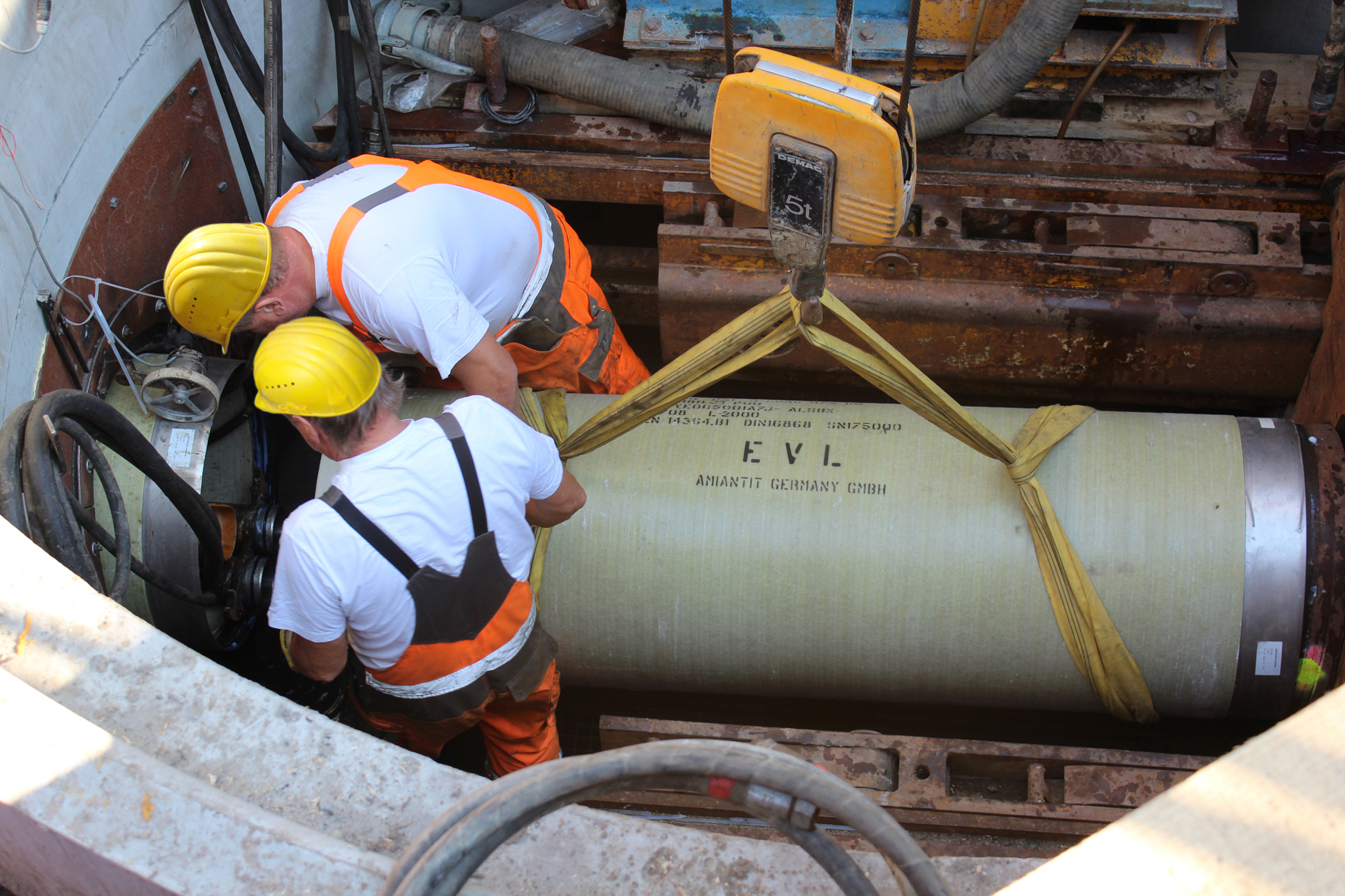 „Ursprünglich war der Einsatz von Vortriebsrohren aus Beton geplant“, so Dlugajczyk weiter. Da die Hamburger Hafenbahn den Eisenbahnverkehrsunternehmen, deren Güterzüge den Hamburger Hafen befahren, die notwendige Infrastruktur zur Verfügung stellt, benötigen alle bei Baumaßnahmen im Gleisbereich verwendeten Produkte die sogenannte EBA-Zulassung. Deshalb fiel die Wahl im Rahmen der Ausführungsplanung durch den Auftragnehmer schließlich auf die GFK-Vortriebsrohre von Amiantit.