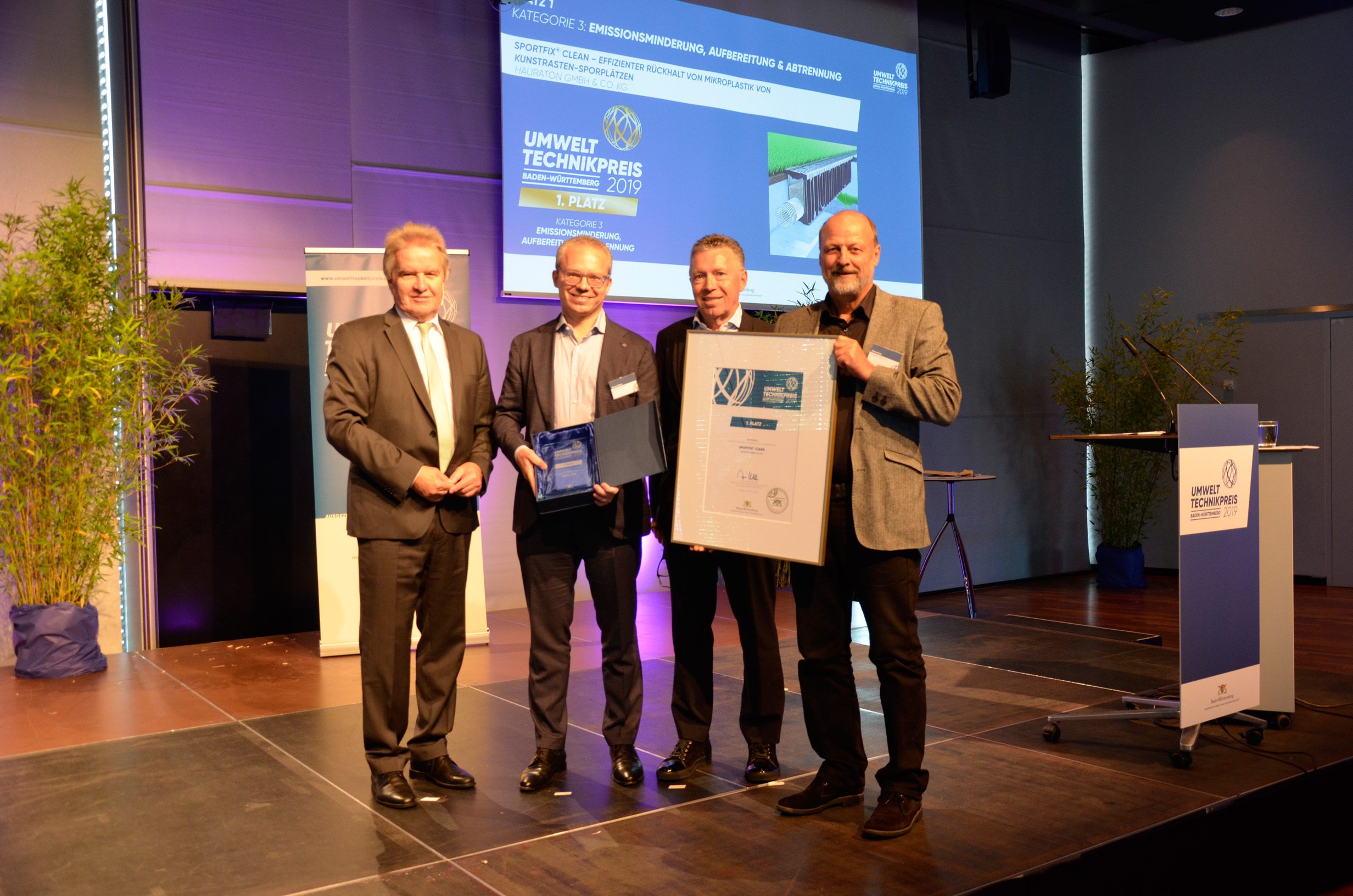 Hauraton hat den Umwelttechnikpreis Baden-Württemberg erhalten. Die Auszeichnung für das Mikroplastik-Filtersystem Sportfix Clean wurde gestern in der Schwabenlandhalle in Fellbach verliehen. Sportfix Clean für den Einbau auf Sportplätzen mit Kunstrasenflächen hält selbst kleinste Partikel von Mikroplastik, Schadstoffen und Schwermetallen aus den Entwässerungsabflüssen zurück und konnte sich damit als Sieger in der Kategorie „Emissionsminderung, Aufbereitung und Abtrennung“ durchsetzen.