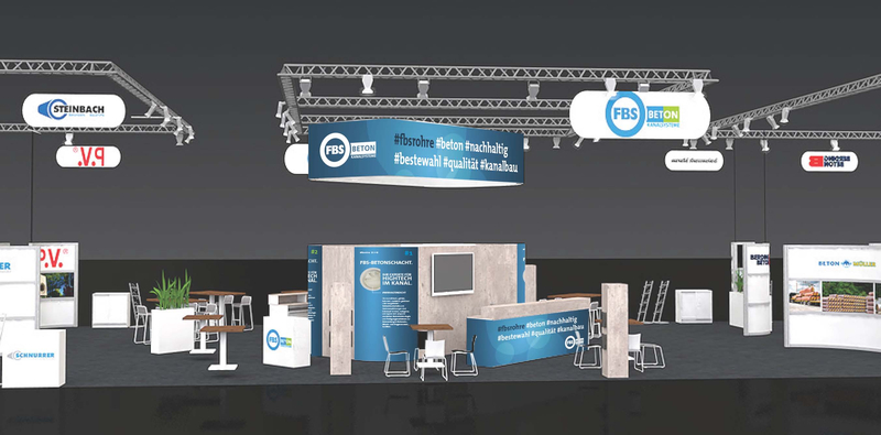 Alle zwei Jahre findet in München die größte internationale Fachmesse für Wasser-, Abwasser-, Abfall- und Rohstoffwirtschaft – IFAT - mit über 150.000 Fachbesuchern und 3.000 Ausstellern aus 58 Ländern statt. Die Fachvereinigung Betonrohre und Stahlbetonrohre e.V. (FBS) organisiert traditionell einen 400 qm großen Gemeinschaftsstand für acht Mitaussteller, allesamt Hersteller von FBS-Rohren und FBS-Schächten aus Beton und Stahlbeton.