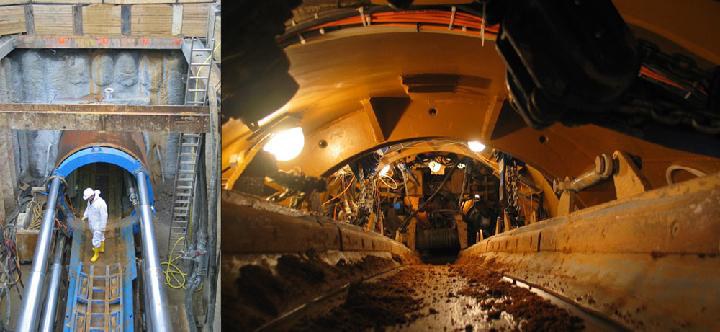 Auch mit Blick auf die Rohrverbindungen wurde das Augenmerk verstärkt auf den Korrosionsschutz gelegt. So enden die FBS-Rohre in vollwandigem Polymerbeton. „Dieser hat nicht nur den Vorteil, chemisch resistent, schrumpffrei und absolut wasserdicht zu sein, sondern er erreicht im Vergleich zu zementgebundenen Betonen erheblich höhere Druck-, Biegezug und Zugfestigkeiten bei gleichzeitig niedrigerem E-Modul als zementgebundener Beton“, erklärt Bauleiter Dipl.-Ing. Roman Kott, Ing.-Büro Dr. Pecher AG. Zusätzlich fangen insgesamt 115 Holzdruckringe den Druck bei Kurvenfahrten auf. Zwei Zwischenpressstationen unterteilen den Rohrstrang in Sektionen und sorgen dafür, dass die Vorpresskraft begrenzt bleibt. Jedes eingesetzte FBS-Rohr hält Vortriebskäften bis 31.000 kN (3.100 t) stand. Bei der beschriebenen Baumaßnahme sind die Vortriebskräfte infolge örtlicher Gegebenheiten auf 11.600 kN (1.160 t) begrenzt.