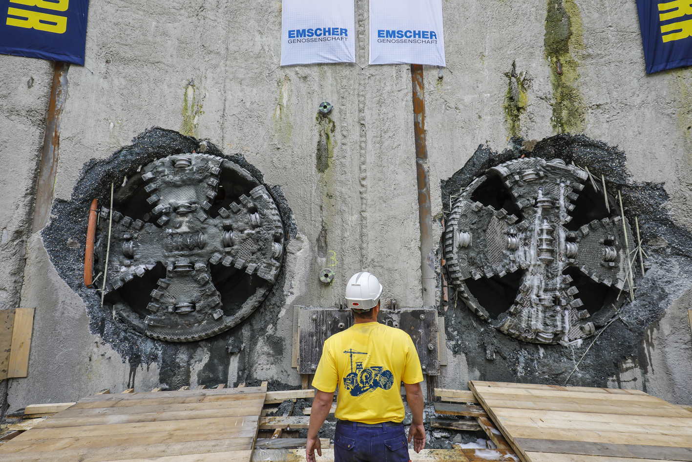 Mit dem Durchbruch der zwei 10 Kilometer langen Hauptsammlerstrecken des Bauabschnitts 40 in Oberhausen sind die Vortriebsarbeiten für den Bau des Abwasserkanals Emscher erfolgreich abgeschlossen. Die beiden von der Baufirma PORR eingesetzten EPB-Schilde (Ø 3.397 mm) erzielten mit Unterstützung von Herrenknecht-Service-Experten zwischen Oktober 2014 und Juni 2017 echte Spitzenleistungen. Die Baustellencrews vollbrachten dank starkem Teamwork das Kunststück, die durchschnittliche Maschinenverfügbarkeit über die gesamte Vortriebszeit bei über 95% zu halten.