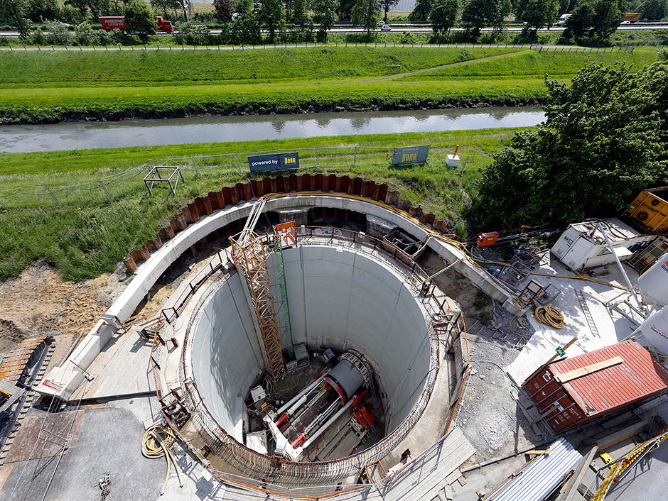 Fast 25 Jahre lang setzten die ausführenden Bauunternehmen für den Vortrieb im Untergrund auf den Bauabschnitten 20, 30 und 40 auf projektspezifisch angepasste Vortriebstechnik von Herrenknecht. Darunter zahlreiche AVN-Maschinen für gesteuerten Rohrvortrieb im kleineren Durchmesserbereich, EPB-Schilde im Rohrvortriebs- und Segmental-Lining-Ausbauverfahren sowie eine Schachtabsenkanlage VSM zum Abteufen eines 23 Meter tiefen Startschachts.