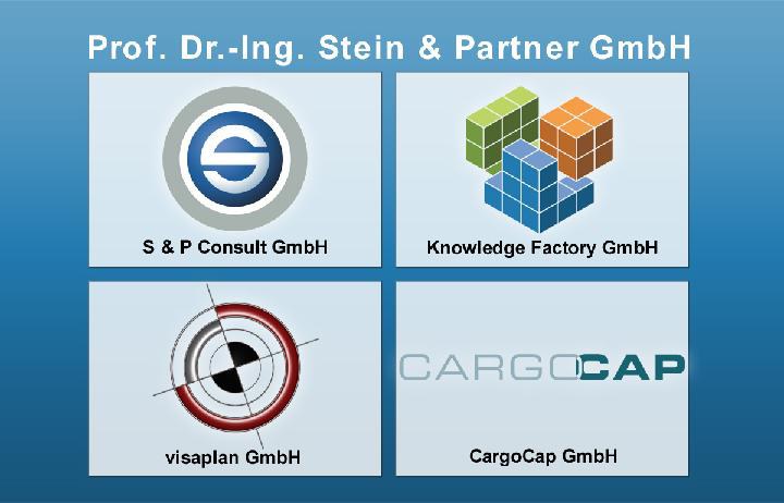 Seit der Gründung der Ingenieurgesellschaft Prof. Dr.-Ing. Stein & Partner GmbH im Jahr 1994 ist das Unternehmen stetig gewachsen. Um auf die vielschichtigen Ausrichtungen, Aufgaben und Anforderungen innerhalb der Branche Leitungsbau und Leitungsinstandhaltung jederzeit entsprechend reagieren zu können, wurden nun mit der S&P Consult GmbH sowie der Knowledge Factory GmbH zwei weitere Tochtergesellschaften neben den bereits bestehenden Firmen Visaplan GmbH und der CargoCap GmbH gegründet, die von der Prof. Dr.-Ing. Stein & Partner GmbH als Holding betreut und verwaltet werden.