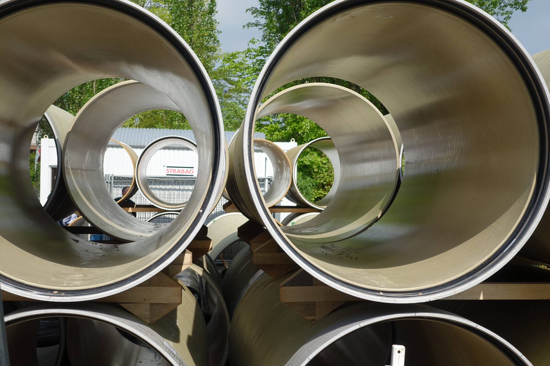 Dipl.-Ing. Hueseyin Akkurt, technischer Gruppenleiter bei der STRABAG AG, arbeitet nicht zum ersten Mal mit den FLOWTITE-Rohren. " Mit GFK-Rohren von AMITECH haben wir in der Vergangenheit bereits mehrfach gute Erfahrungen gesammelt – zuletzt beim Bau einer Abwasserdruckwasserleitung DN 1.200 zwischen dem Pumpwerk Süd und der Zentralkläranlage in Wilhelmshaven." Die Umsetzung des Projektes, im Zuge dessen rund 6 km Haltungen in Wilhelmshaven verlegt wurden, war reibungslos vonstatten gegangen. Bei der Sanierung der Schellingstraße empfahlen sich glasfaserverstärkte Kunststoffrohre aus mehreren Gründen. Laut des vom Planungsbüro Ingenieurgesellschaft Nordwest mbH erstellten Bodengutachtens besteht der Untergrund im Bauabschnitt aus Kleiboden mit Torfeinlagerungen, darunter befinden sich schluffige Sande. Die Verlegung von schweren Rohren – etwa aus Beton – hätte eine Gründung mit Bohrpfählen erfordert. "Dieses Verfahren hätte vergleichsweise hohe Kosten verursacht, den Zuschlag bekommen haben deshalb GFK-Rohre", so Akkurt weiter. Die spielen aber noch einen weiteren produkttypischen Vorteil aus: "Aufgrund der im Vergleich zu Betonrohren deutlich dünneren Rohrwandung von GFK-Rohren fällt auch deutlich weniger Aushub an – folglich sinken auch die Kosten für den Bodenaustausch", erläutert Akkurt. Nicht zuletzt sind die GFK-Rohre durch ihr geringeres Gewicht auf der Baustelle leichter zu handhaben als Rohre aus anderen Werkstoffen, sodass auch nur leichteres Baugerät erforderlich ist. In Wilhelmshaven verlegt wurden 460 m Rohre in DN 500, weitere 200 m der Leitung wurden zu DN 1.200 aufdimensioniert und dienen zukünftig als Stauraumkanal. Da zahlreiche Leitungen queren und die Rohre dem eingesetzten Verbau angepasst werden sollten, wurde mit Rohren von 3 m Baulänge gearbeitet.