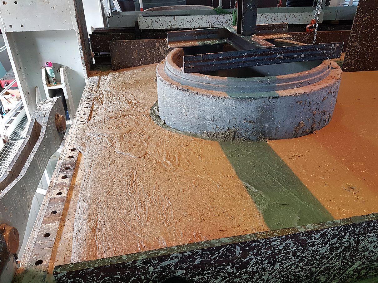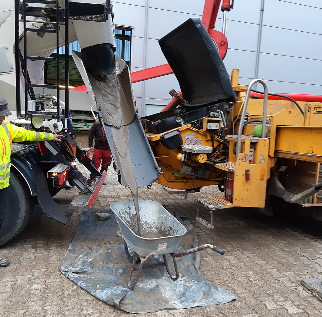 Das Material Terrapact von Holcim ließ sich nur mit großem Aufwand und schwerem Gerät wieder aus dem Versuchsstand lösen. Folge: ein UNGENÜGEND im K.O.-Kriterium Wiederaushubfähigkeit, und damit nicht einsetzbar im Kanalbau. Der WBM-Flüssigboden dagegen leistete sich einen Schnitzer im K.O.-Kriterium Überbaubarkeit. Er hätte erst nach deutlich mehr als 28 Tagen überbaut werden können. Zusätzlich wurde bei diesem Produkt der MAK-Wert für Ammoniak überschritten (MAK = mittlere Arbeitsplatz-Konzentration) und auch die Wiederverwertbarkeit war mangelhaft. Das Urteil der Tester: UNGENÜGEND, nicht im Kanalbau einsetzbar.
