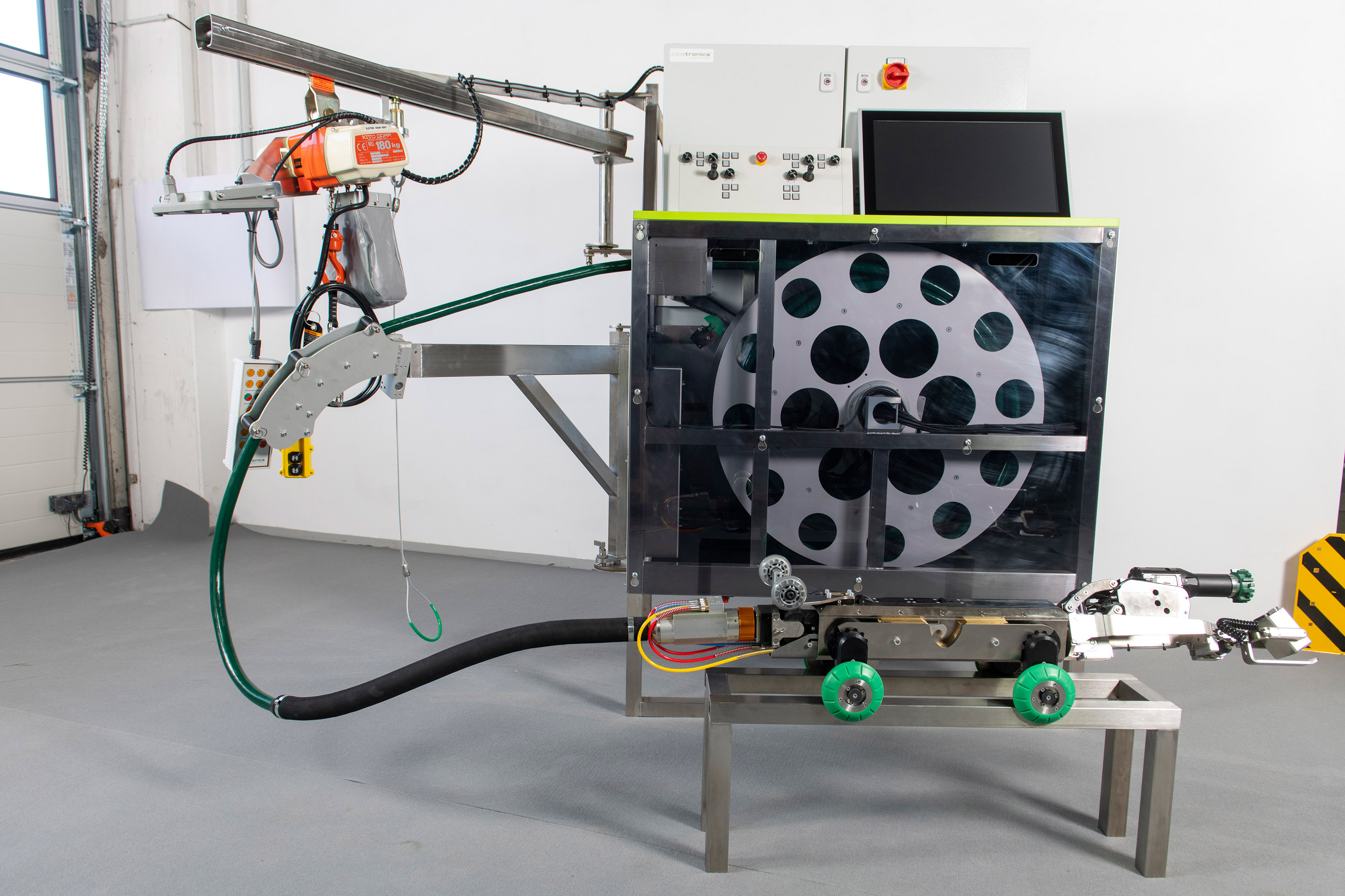 Mit neuer Sensorik wurde die Basis dafür geschaffen, die Roboteranlage um neue Funktionen und Assistenzsysteme zu erweitern. Eine weitere Neuheit ist eine 4. Achse, die jetzt ein stufenloses Schwenken des Fräskopfes ermöglicht, um auch in schwer zugänglichen Bereichen des Kanalrohrsystems arbeiten zu können.