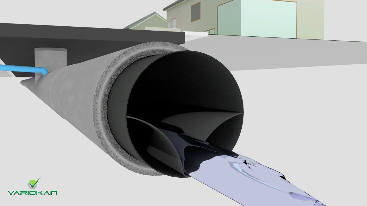Im Masterstudium kam ihm die Idee, die er bis zum heutigen Prototypen entwickelte: Ein Gummischlauch kann in bestehende Rohrfassungen eingezogen werden, so dass keine aufwändige Neuverlegung erforderlich ist. Das allein ist noch keine Innovation. Einzigartig macht Variokan das innere Gerüst der flexiblen Innenhaut, ein V-Profil, das sich situativ anpasst und imstande ist, die Fließgeschwindigkeit des Abwassers zu regulieren. Die schmale Rinne, die durch die V-Basis läuft, sorgt auch bei geringem Zustrom für einen Abfluss mit ausreichender Geschwindigkeit. Nimmt die Flüssigkeitsmenge zu, bewirkt der steigende Druck, dass sich der Durchflussraum erweitert und große Abwassermengen abgeführt werden können. Eine technische Lösung, die sowohl beim zuletzt gehäuft auftretenden „Starkregen“ als auch bei undichten Rohren gute Dienste leisten wird. Interessant ist Variokan zudem für ländliche Gemeinden mit schrumpfenden Einwohnerzahlen, deren Infrastruktur für die Abwasserentsorgung inzwischen zu groß bemessen ist. Denn Ebbe im Kanalsystem führt zu Rückständen, die einen hohen Reinigungsaufwand und Mehrkosten verursachen.