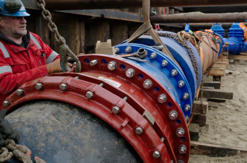 Rudy Woudenberg, Area Sales Manager/Product Manager Development bei GF Waga, gewährleistete die präzise Installation der DN1000-Produkt-Lösung und sammelte das wertvolle Feedback des Bauleiters. Die Installation der DN1000 Kupplung, die mehr als 3 m unter dem Meeresspiegel durchgeführt wurde, konnte das Potenzial der neuen MULTI/JOINT® Dimensionen in anspruchsvollen Wasseranwendungen aufzeigen.