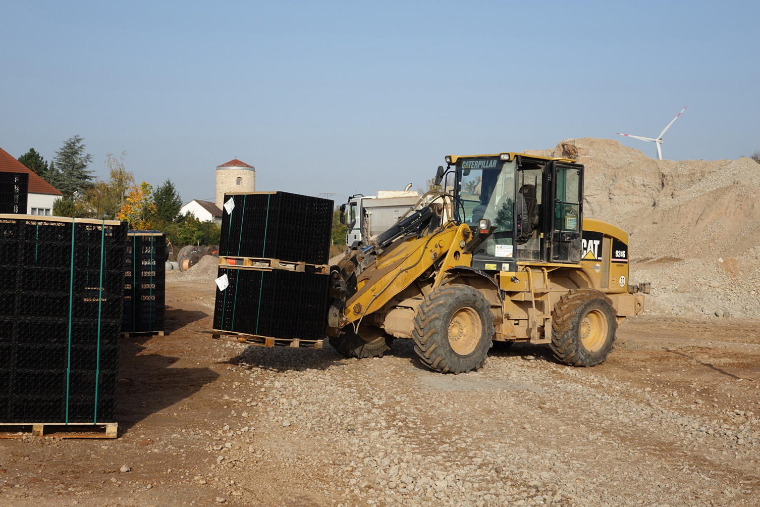 Im April 2016 rückten die Bagger und Abbruchmaschinen auf dem 3,4 Hektar großen Grundstück im Nordosten von Pfeddersheim an und leisteten ganze Arbeit: Die Gebäude und Hallen eines ehemaligen Bundeswehrdepots wurden abgebrochen, 15.000 m2 versiegelte Betonfläche beseitigt und 15.000 t Erdmaterial abgefahren. Rund 10.000 m3 Betonrecycling konnten als Auffüllboden in den Kanalgräben und als Dämmschüttung im Straßenbau wiederverwendet werden.