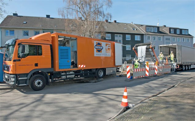 Der Ausführung des Schlauchlinings ging eine intensive Arbeitsvorbereitung der Baustelle voraus. Sowohl die TV-Befahrung, die Untergrundvorbereitung der Kanäle als auch die Sicherung der Versorgungsleitungsleitungen, die das Baufeld querten, galt es im Vorfeld zu organisieren.