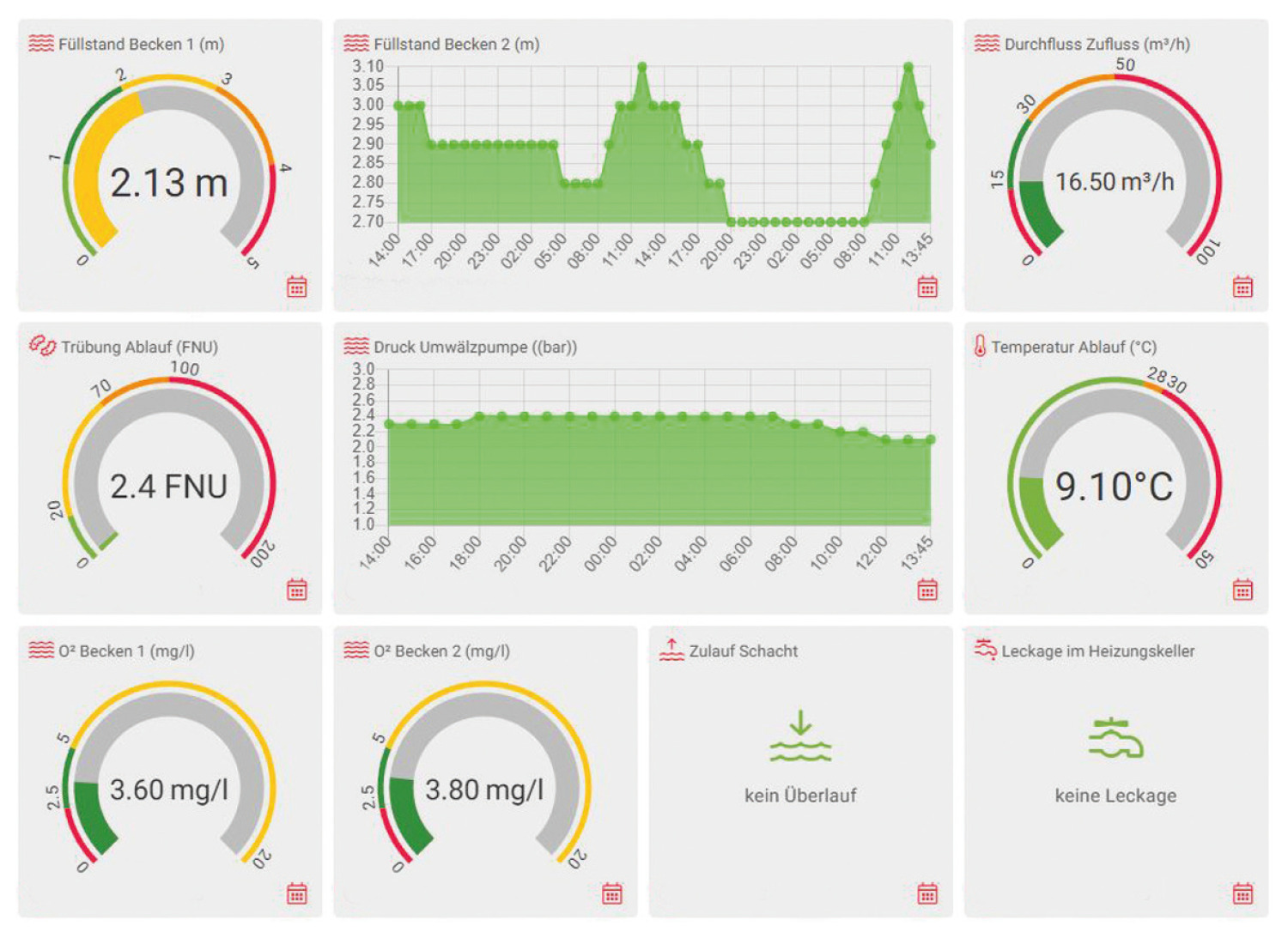 All this information converges in a secured environment in the IoT where the processes can be safely and easily controlled with the help of software. The data is used to manage the treatment process as well as to pick up malfunctions. The data is then presented on an online platform that has been adapted to the customer and its requirements: the traffic light colours – green, amber and red – show how the operations are running and where action may need to be taken. This all happens in an uncomplicated way via laptops, tablets and smartphones.