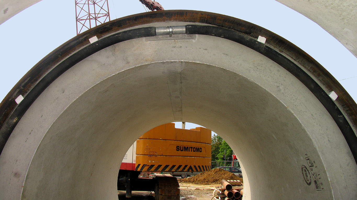 Die konventionelle Rohrverbindung mit Druckübertragungsringen aus Holz oder Spanplatten stoßen hier vielfach an ihre Grenzen. Manchmal fällt die Problematik erst auf, wenn während der Planung die obligatorische Vorstatik für die Rohre nach dem DWA-Arbeitsblatt A 161 so kleine Vortriebskräfte zulässt, dass die Anzahl der erforderlichen Zwischenpressstationen unerwartet stark ansteigt oder ein Vortrieb gar nicht mehr machbar ist. Selbst die bewährte OSB-Platte wird insbesondere bei S-Kurven vielfach überfordert.