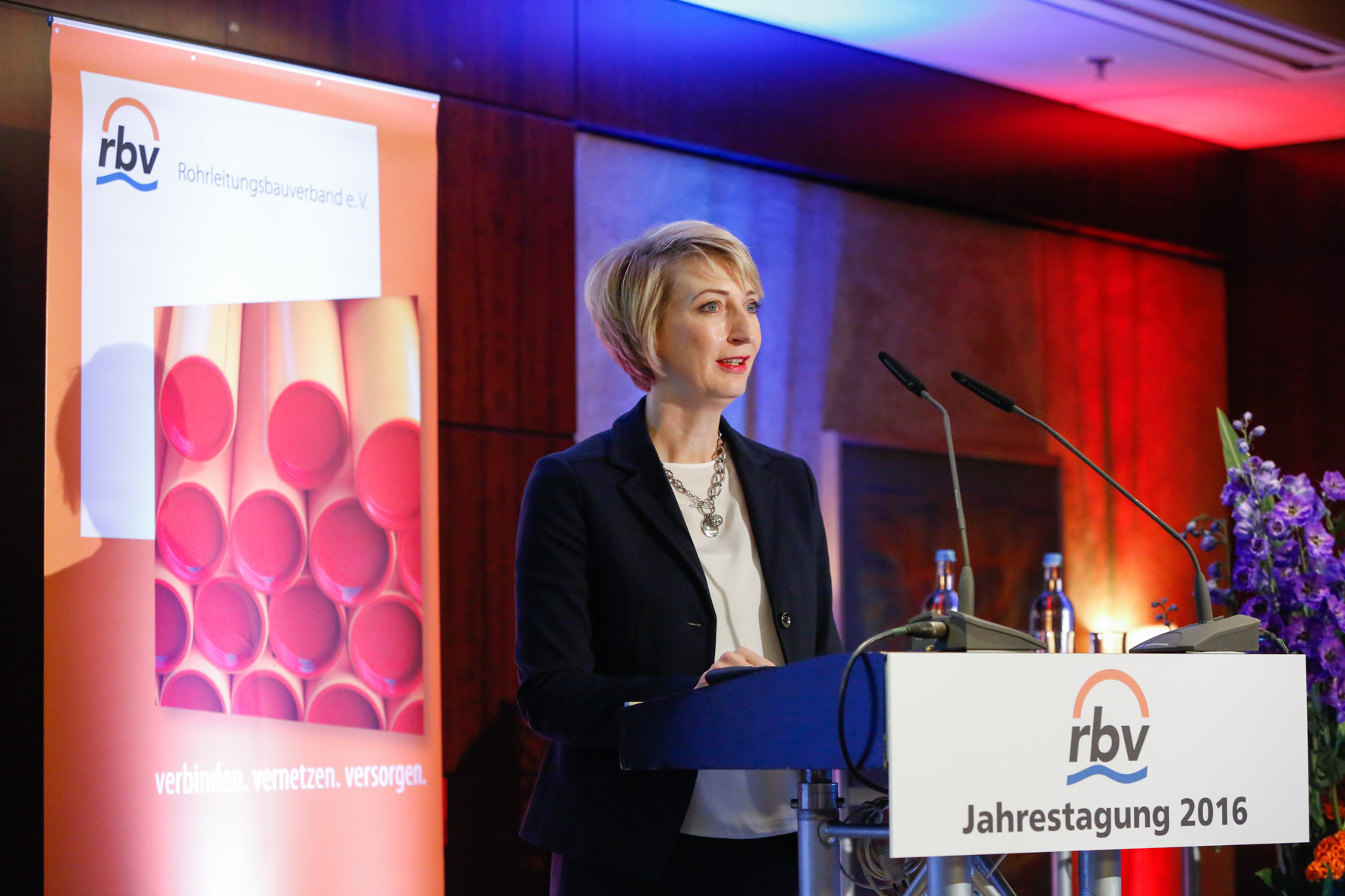 Mit Gastrednerin Alexandra Ernst, seit dem 1. Oktober 2015 Kaufmännischer Vorstand des Deutschen Vereins des Gas- und Wasserfaches e. V. (DVGW), war ein Partner vertreten, mit dem der rbv traditionell besonders stark verbunden ist.