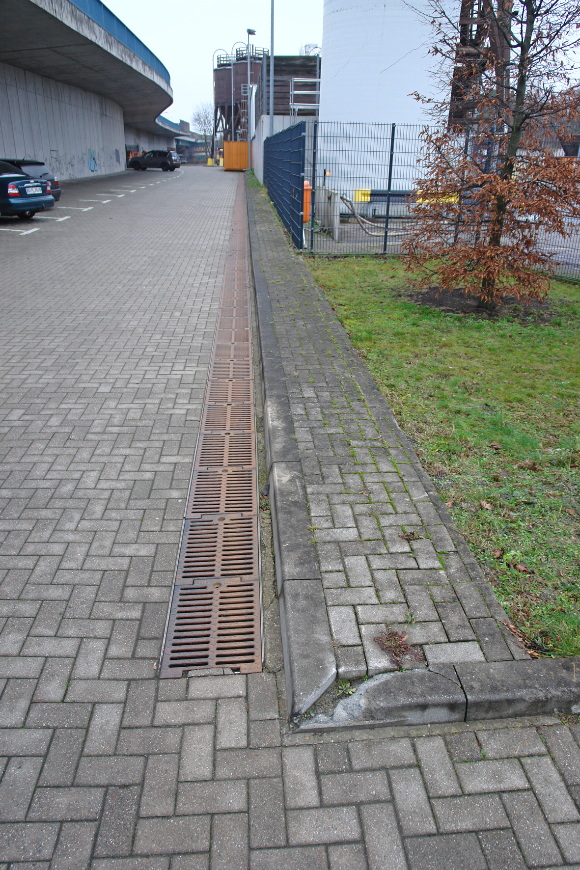 Zwei der zwischen 15 und 30 m langen Sickermulden wurden in offener Bauweise ausgeführt, bei der dritten handelt es sich um eine geschlossene Rinne mit Gussabdeckung Klasse D (40t), die auch von Pkw und Schwerlastverkehr befahren werden kann. "Die eingebauten Mulden beeinträchtigen den Ablauf auf dem Betriebshof in keinster Weise", freut sich Düring. Auch die Instandhaltung des Drainagesystems gestalte sich problemlos – die offenen Mulden befreie man zwei bis drei Mal im Jahr von Laub und Unkraut, bei der geschlossenen Sickermulde reiche bereits eine einmalige jährliche Reinigung.