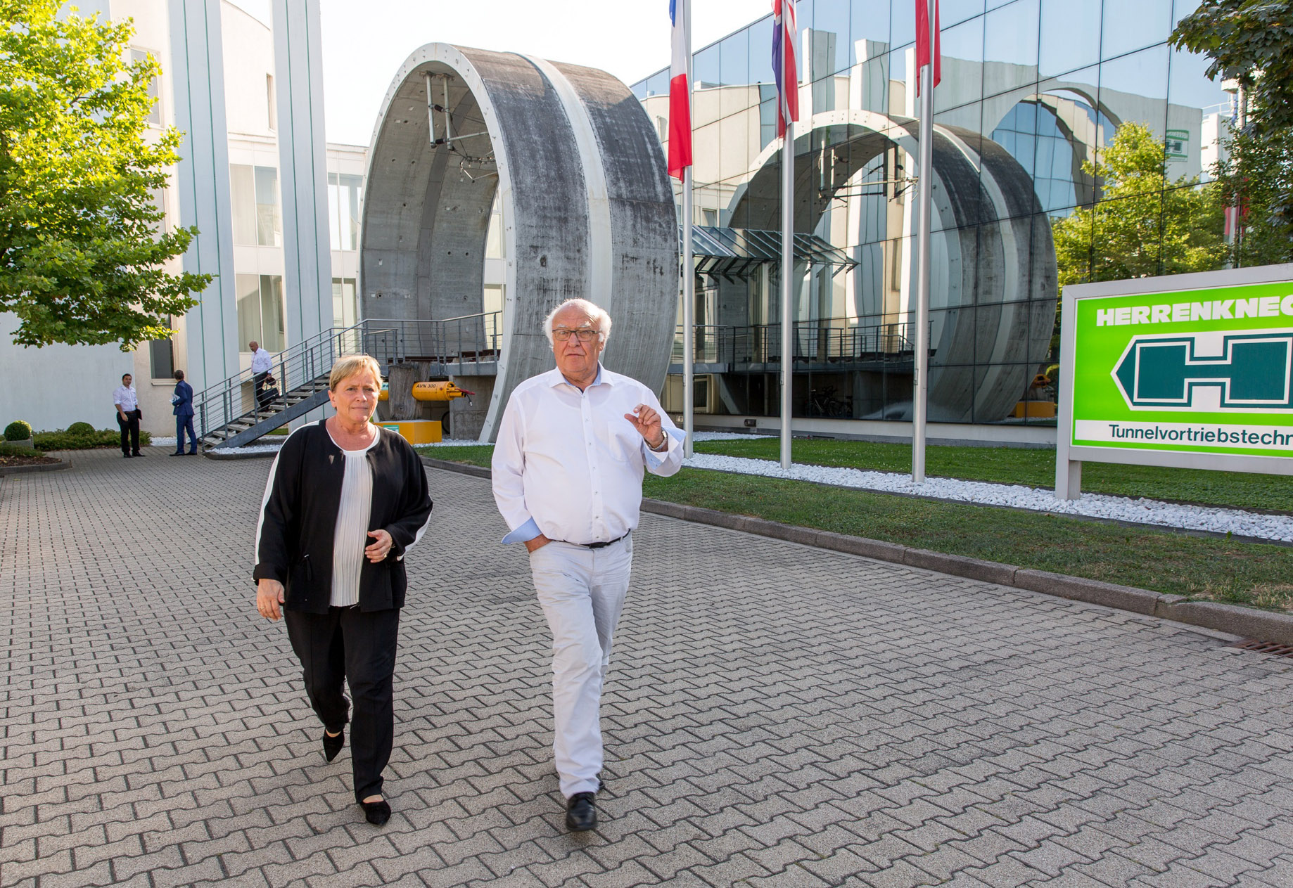 Mit Firmengründer und Vorstandsvorsitzenden Dr.-Ing. E.h. Martin Herrenknecht sowie Mitgliedern des Vorstands und des Managements tauschte sie sich zur Zukunftsfähigkeit des Wirtschaftsstandorts Deutschland aus. Im Fokus der Gespräche standen außerdem die Themen Fachkräftesicherung und Ausbildung.