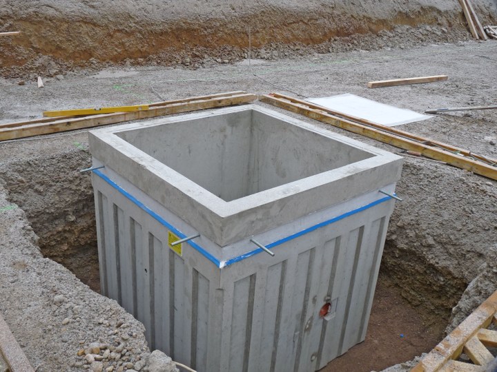 "Erstmals lässt sich ein druckwasserdichter Pumpensumpfschacht installieren, ohne dass auf der Baustelle aufwendig abgeschalt werden muss. Dadurch gewinnt der Bauunternehmer mindestens drei Stunden", erklärt Alexander Hieber, Geschäftsführer der Hieber Betonfertigteilwerk GmbH, den größten Vorteil des neuen Systems, das vor Ort einfach versetzt und mit der Bodenplatte verbunden werden kann.