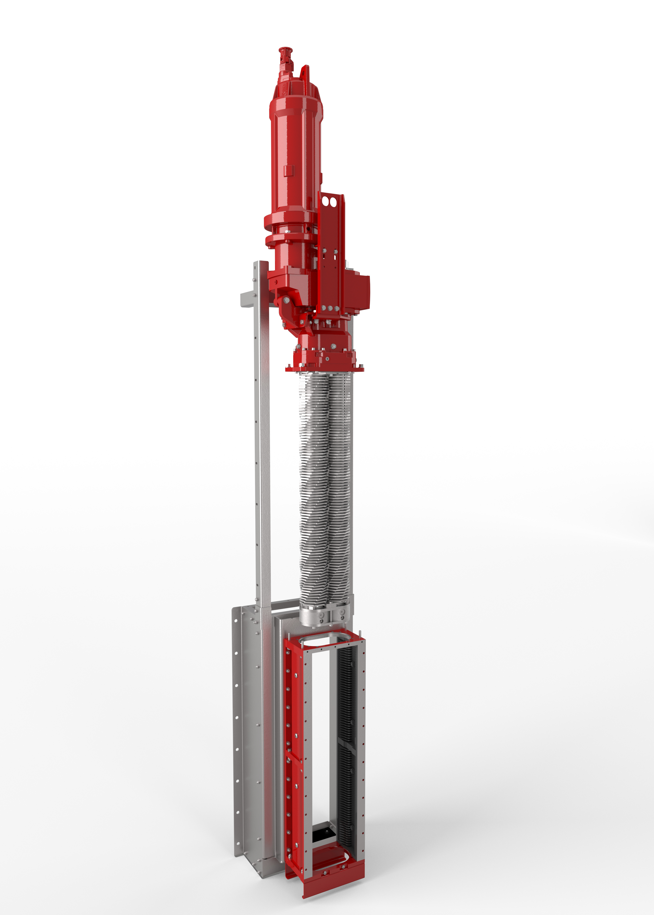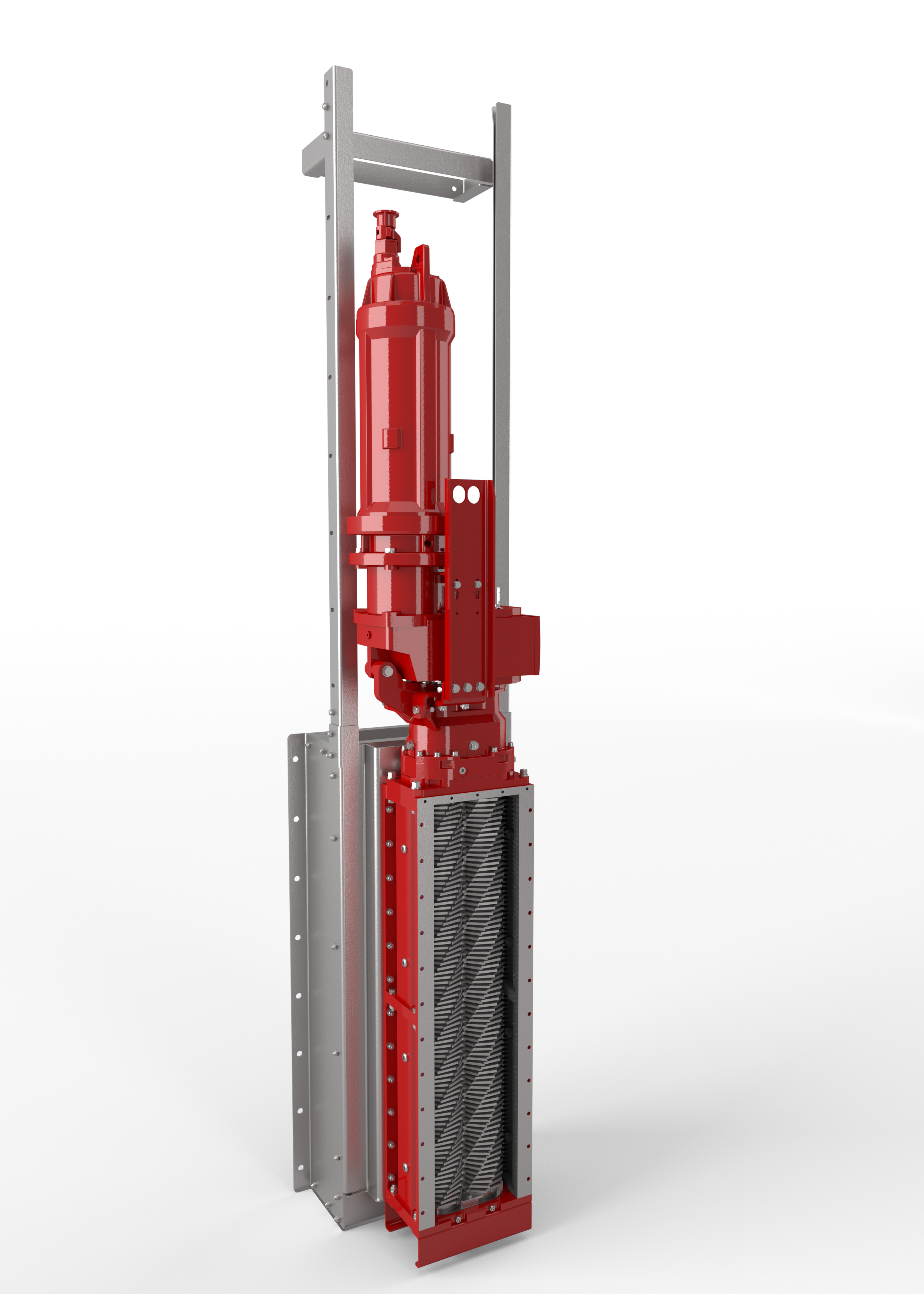 Der XRipper Giant (XRG) ist eigens für sehr hohe Durchflussmengen in großen Kanälen konzipiert. Er zerkleinert problemlos Störstoffe im Abwasser bei Durchflussraten von bis zu 3.000 m3/h. Der Zweiwellen-Zerkleinerer basiert auf dem bewährten XRipper Channel (XRC) und wurde um seitliche High Capacity Units erweitert. Diese bestehen aus jeweils einem Sieb sowie langsam und dadurch energieeffizient laufenden Freiräumern. Störstoffe werden vom Sieb aufgehalten und von den Freiräumern kontinuierlich in die Mitte des Zerkleinerers gefördert.